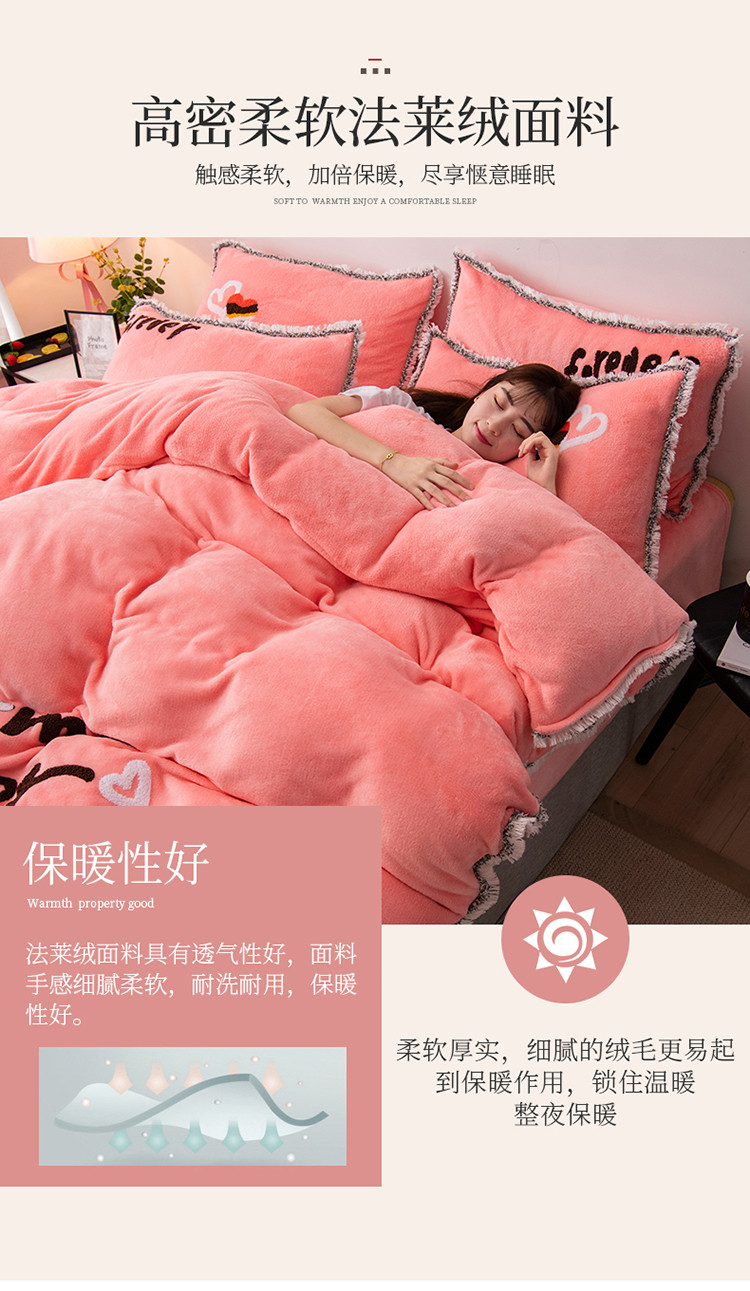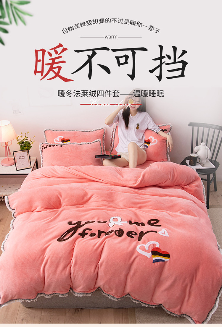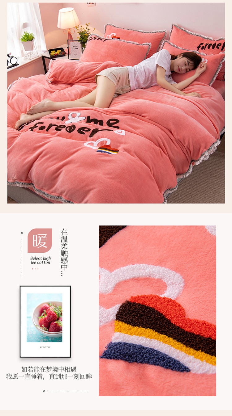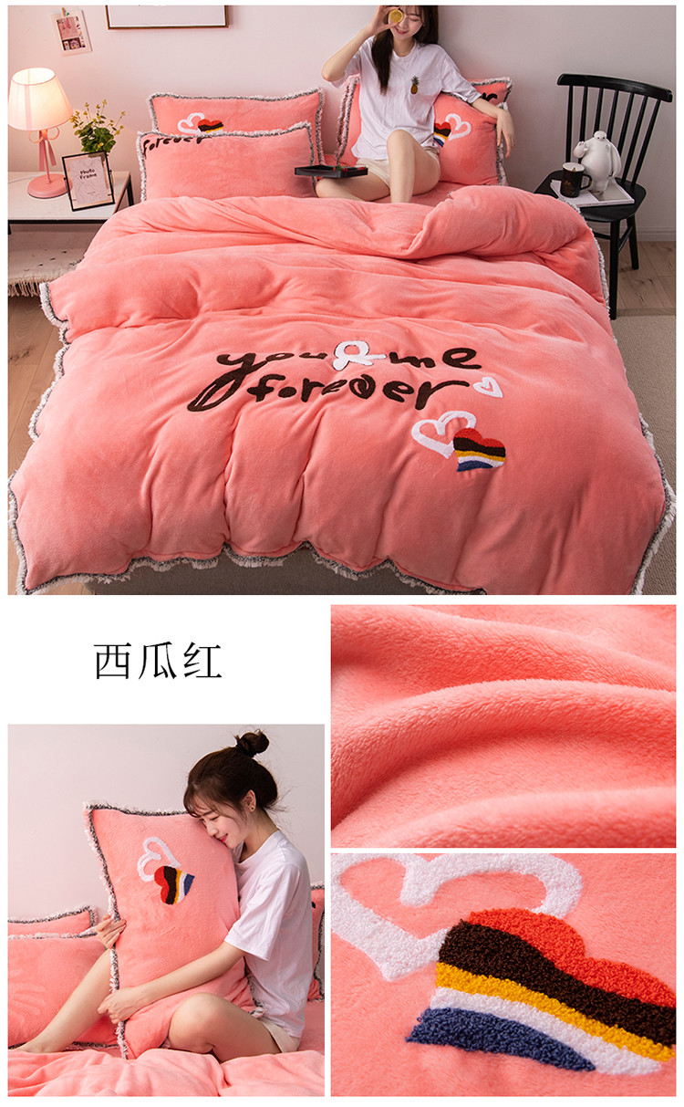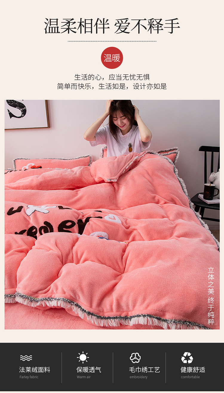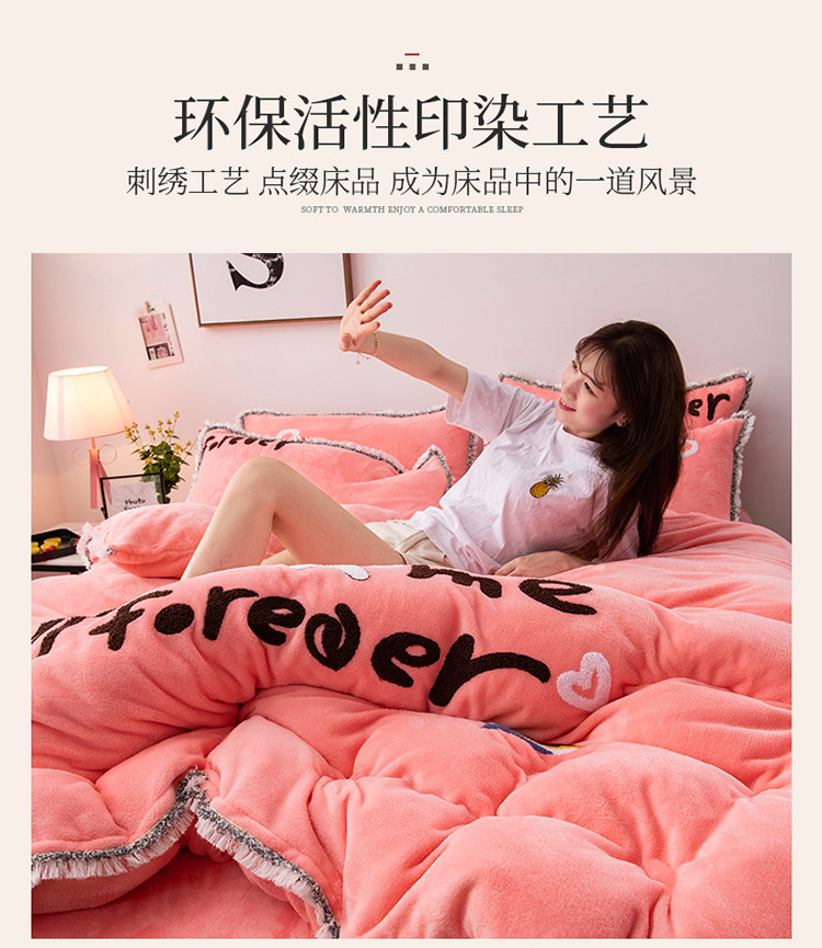 雨洋2025新款加厚保暖8.5斤牛奶绒金貂婴儿绒四件套 心心相印,心心相印