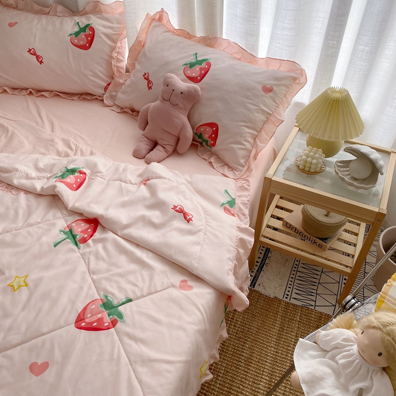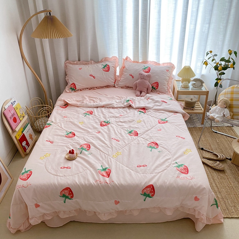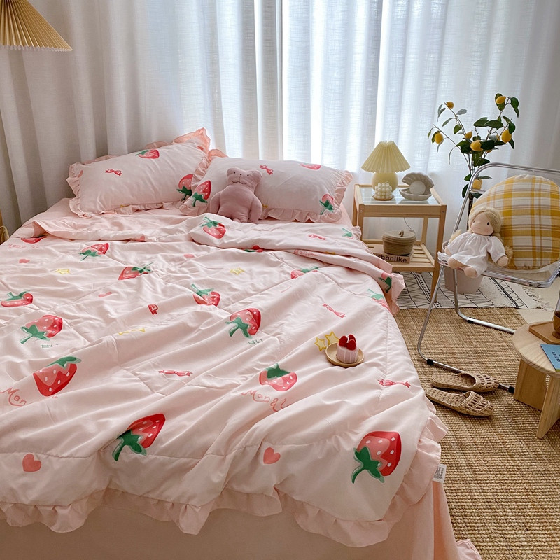 顾里 2020新款ins治愈小清新水洗棉夏被四件套 日系草莓