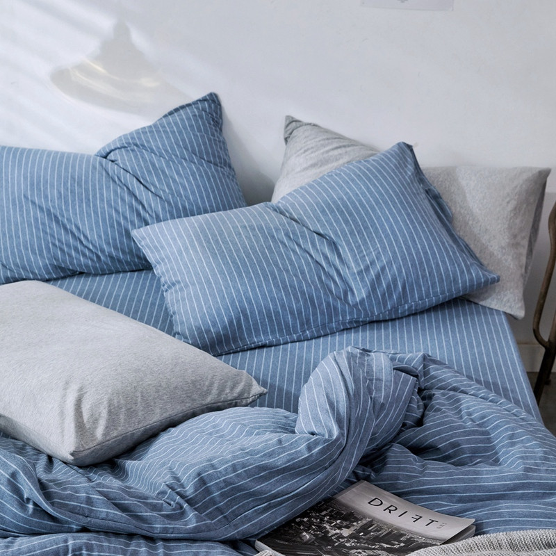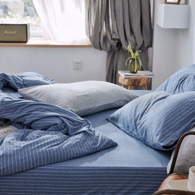 当前位置: 91家纺网 > 商品网购 > 床品套件 > 四件套 > 针织棉四件套 > 华超针织 2021新款针织四件套 牛仔蓝细条
