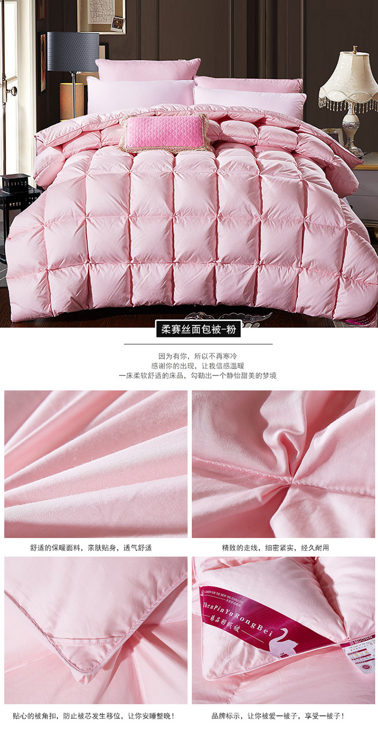 商品名称:俏企鹅 2025新款柔赛丝面包格羽绒被 粉色
