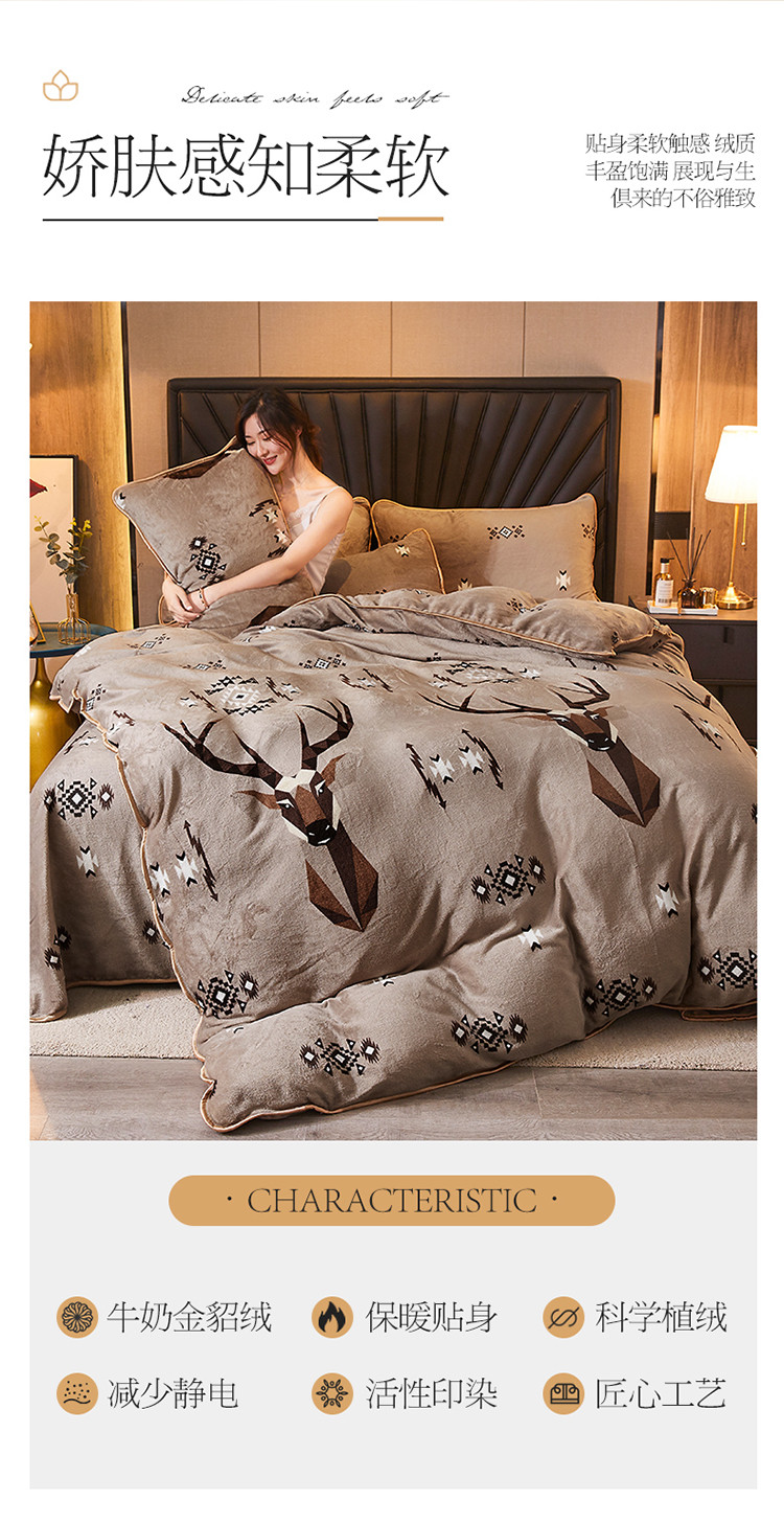 迷仙巢 2020新款牛奶金貂绒四件套 麋鹿
