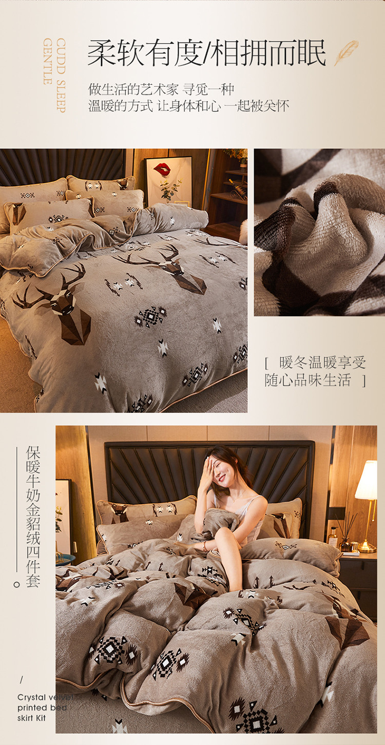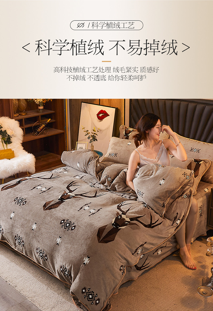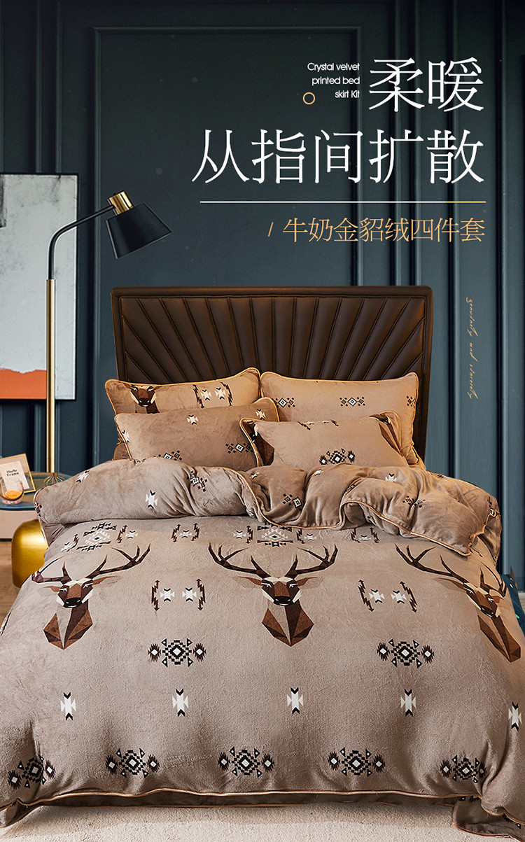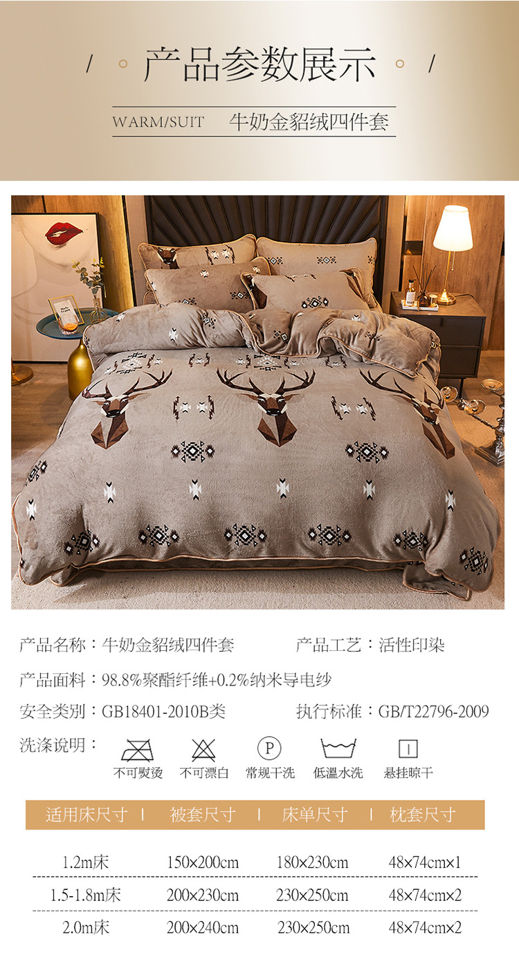 商品名称:迷仙巢 2020新款牛奶金貂绒四件套 麋鹿