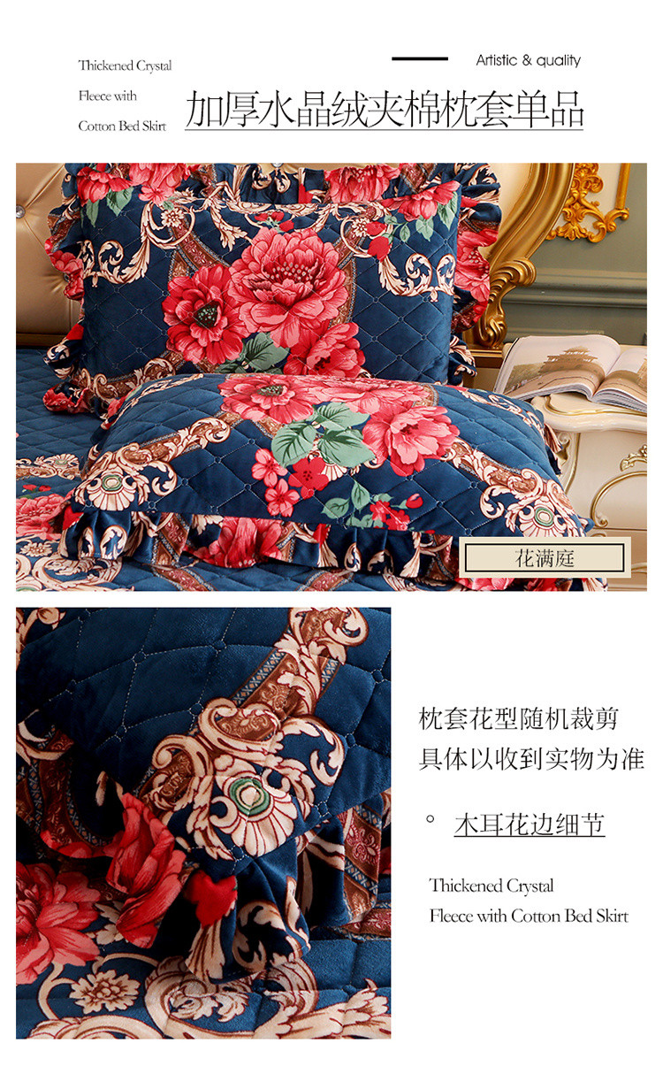 • 91家纺网 家纺一手货源 找家纺 宜凡家纺 2021新款夹棉水晶绒枕套一对 花满庭
