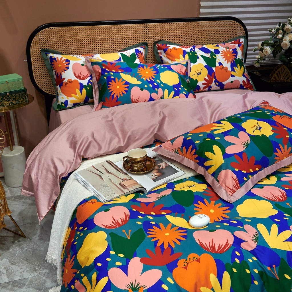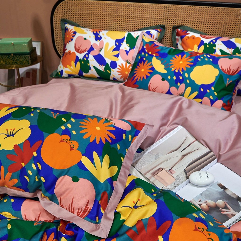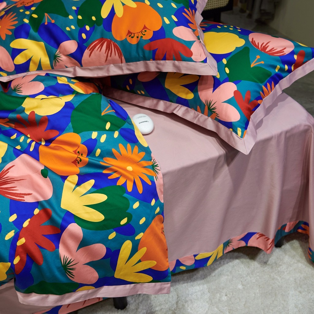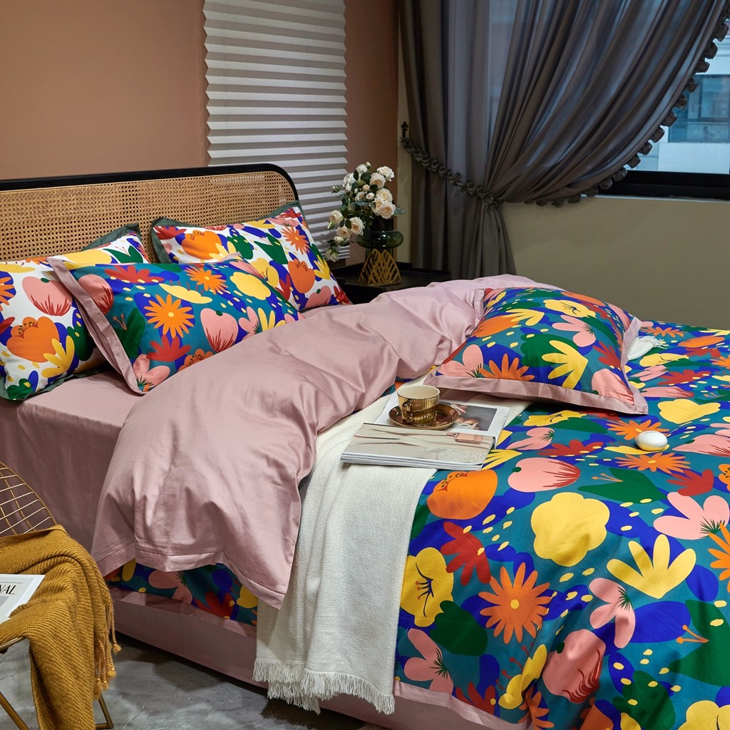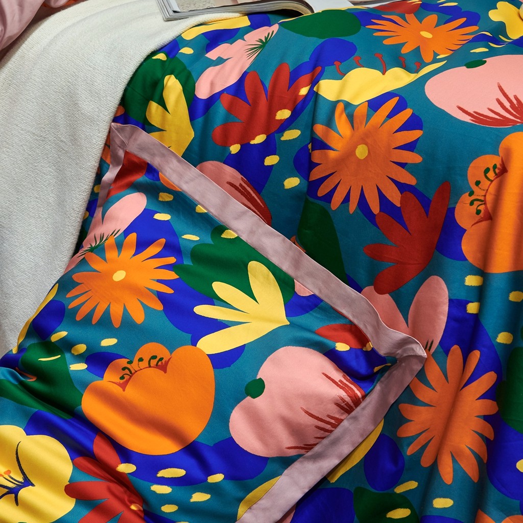 (总)优然居家纺 2025新款50支全棉纯棉印花法式双头木耳边四件套,觅棠,莫妮卡艾绿,莫妮卡罗兰,慕斯粉,薇薇安