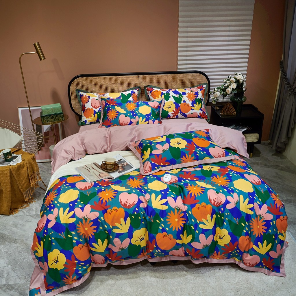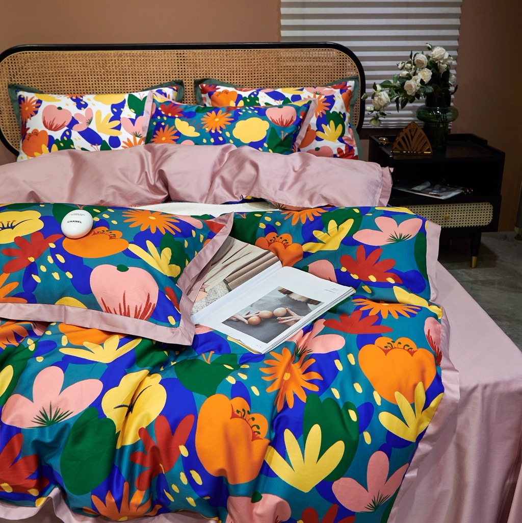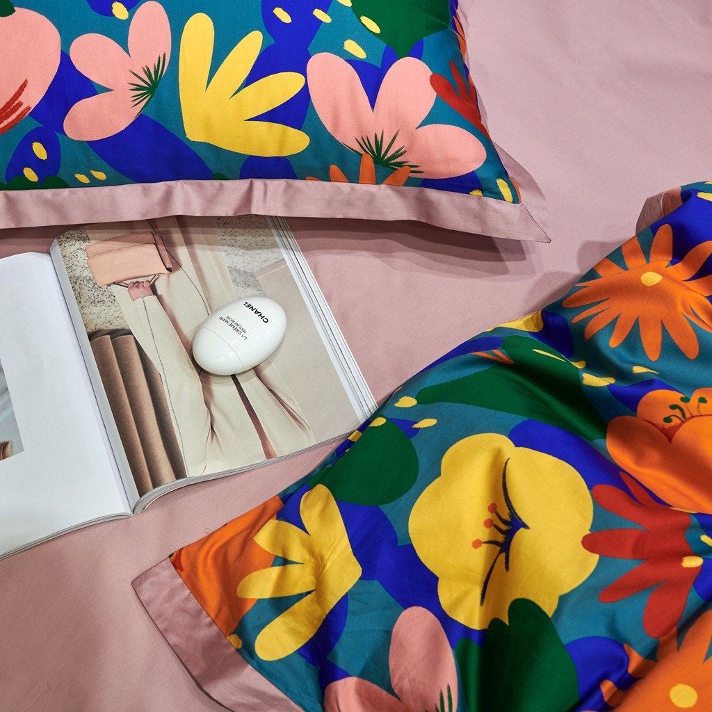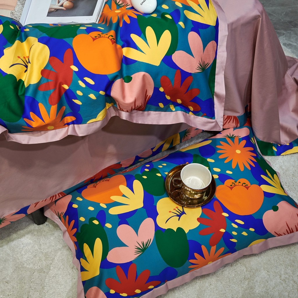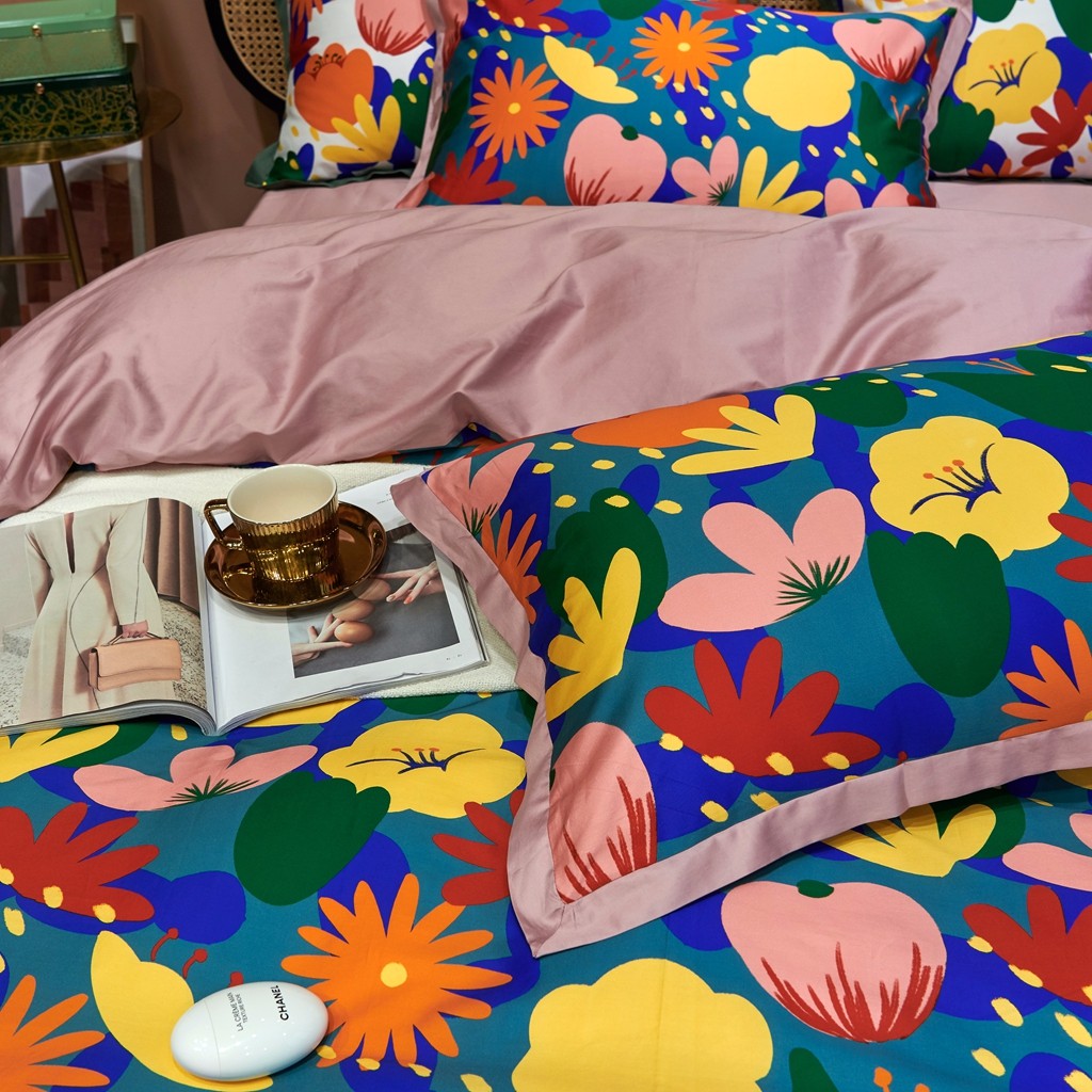 (总)优然居家纺 2025新款50支全棉纯棉印花法式双头木耳边四件套,觅棠,莫妮卡艾绿,莫妮卡罗兰,慕斯粉,薇薇安