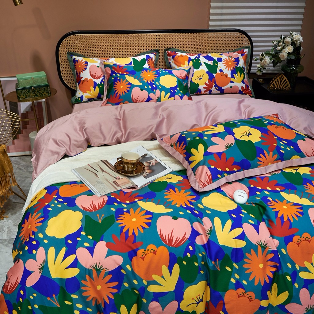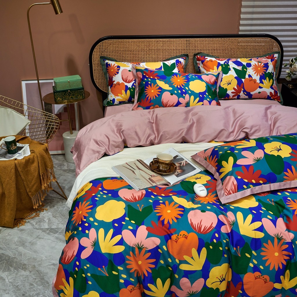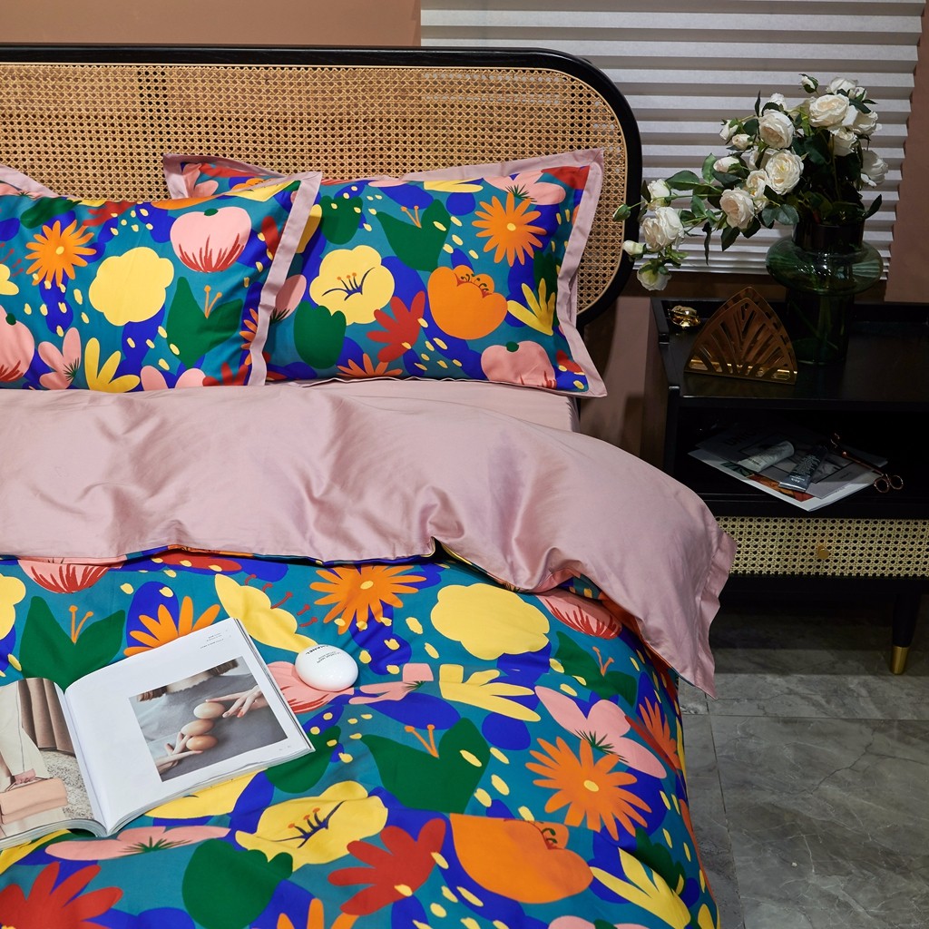 优然居 2020新款小边款数码印花四件套 花蕊灰