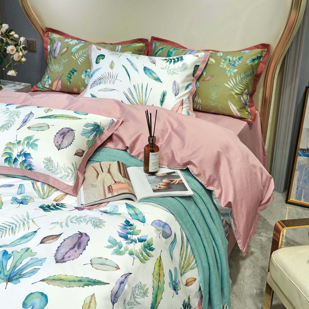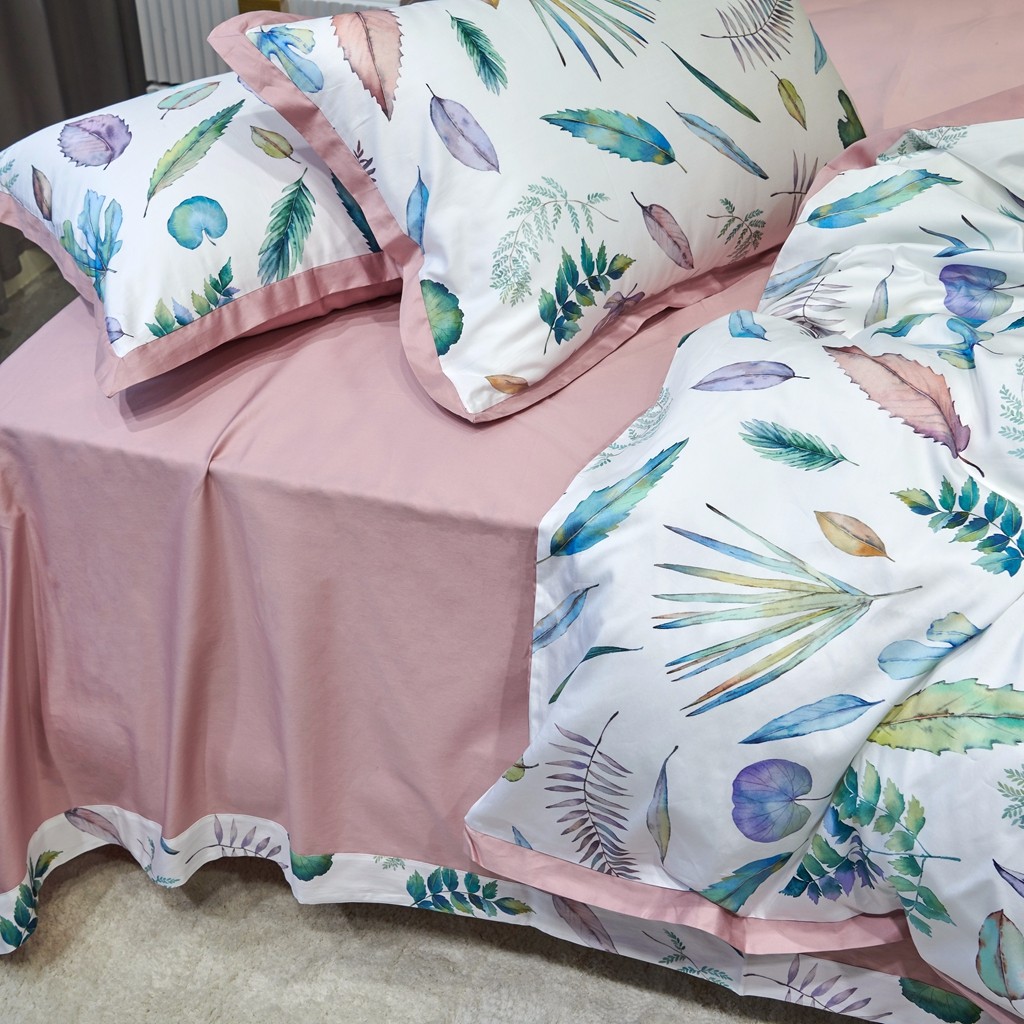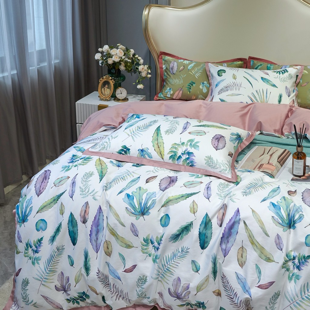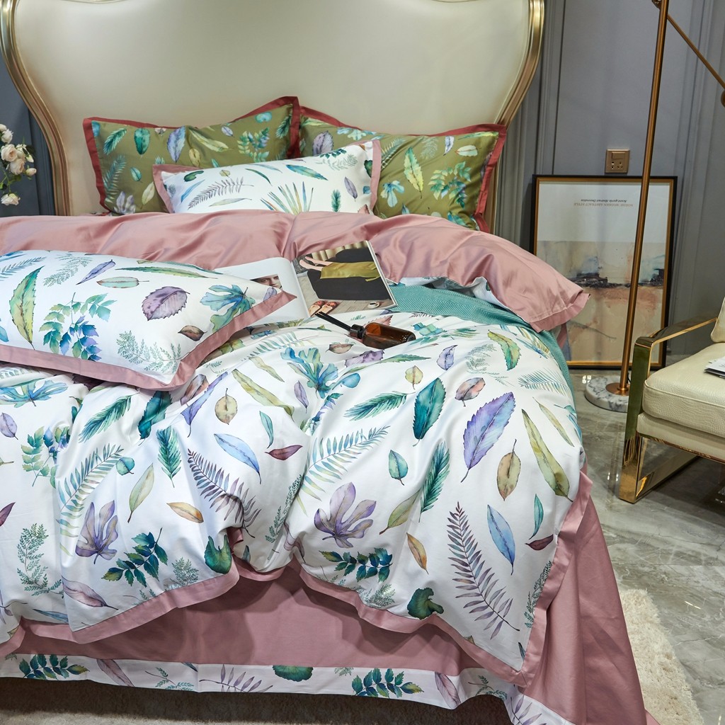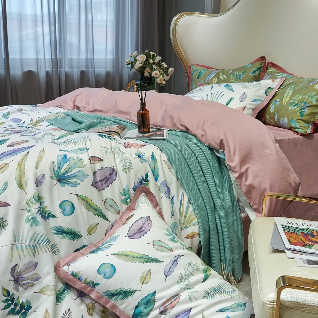 (总)优然居家纺 2025新款50支全棉纯棉印花法式双头木耳边四件套,觅棠,莫妮卡艾绿,莫妮卡罗兰,慕斯粉,薇薇安