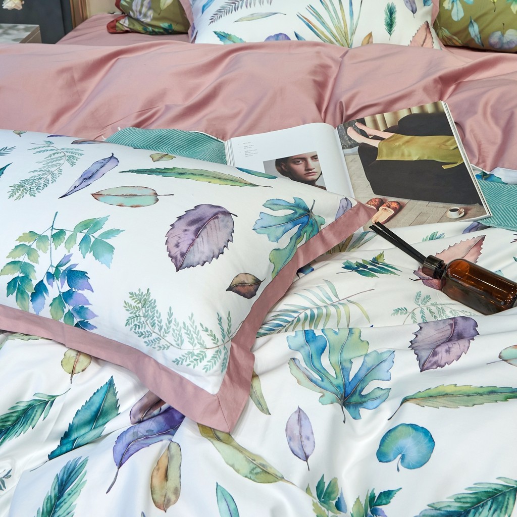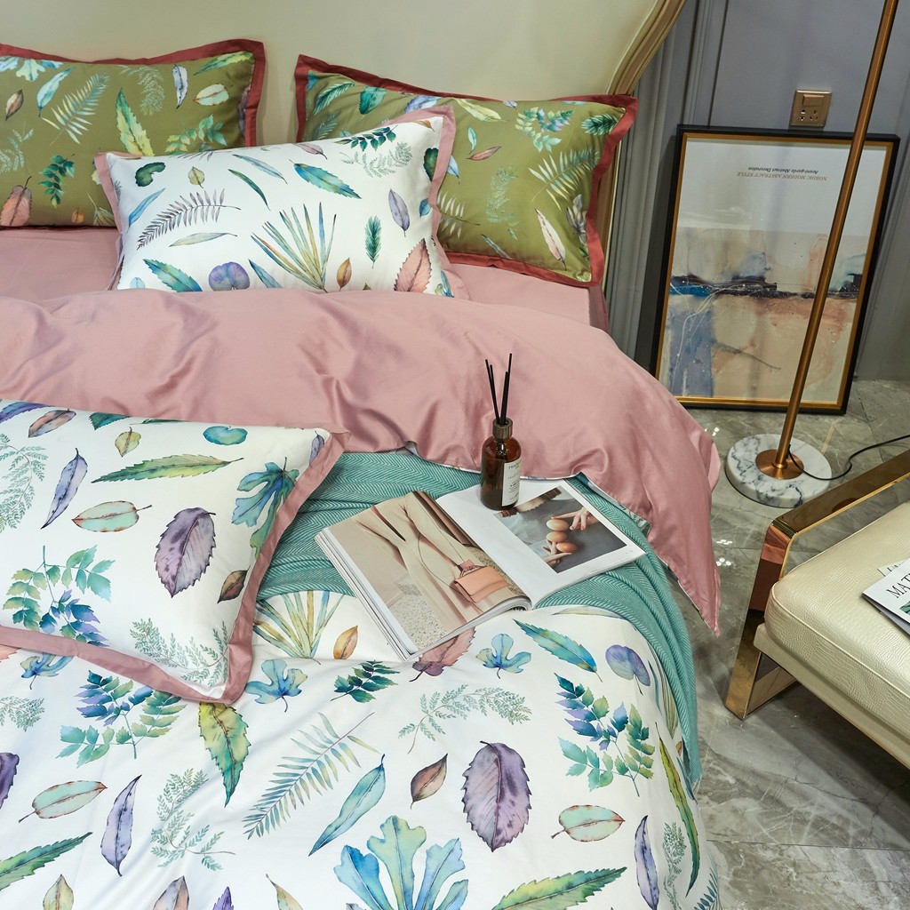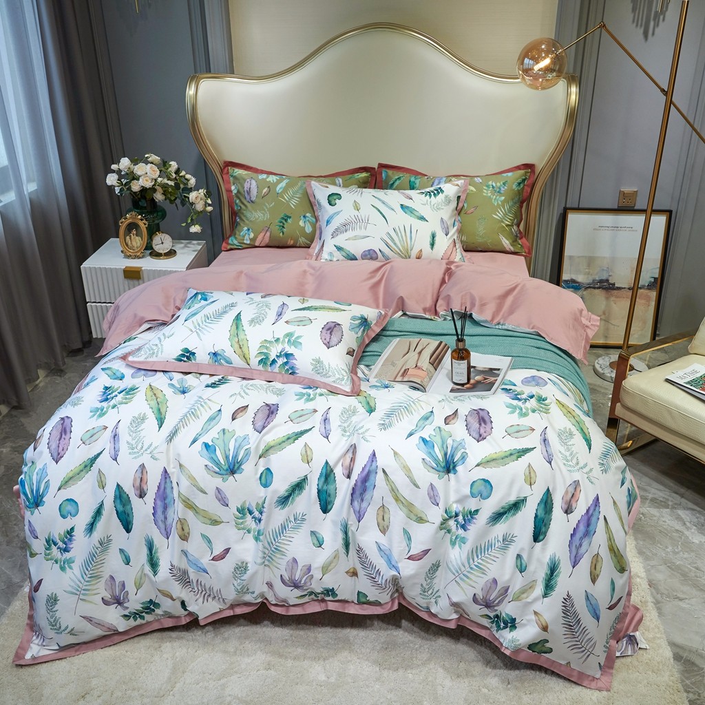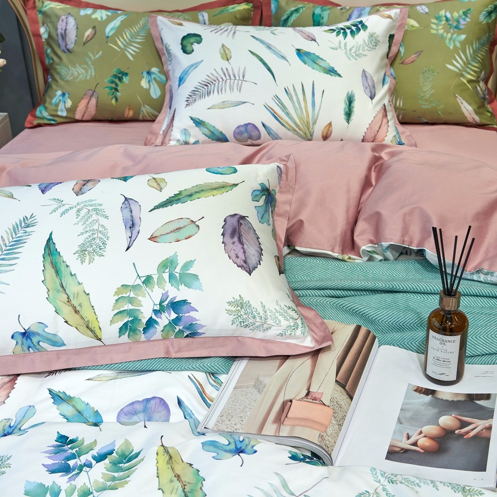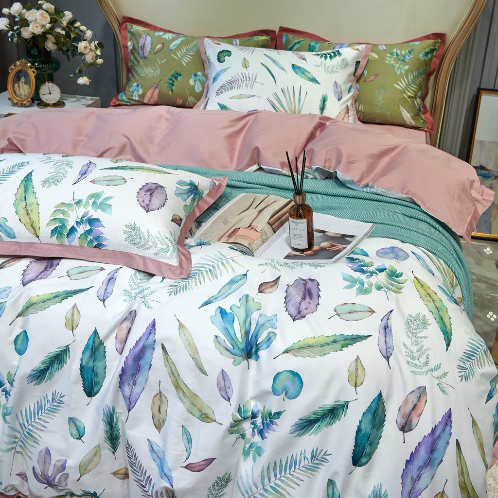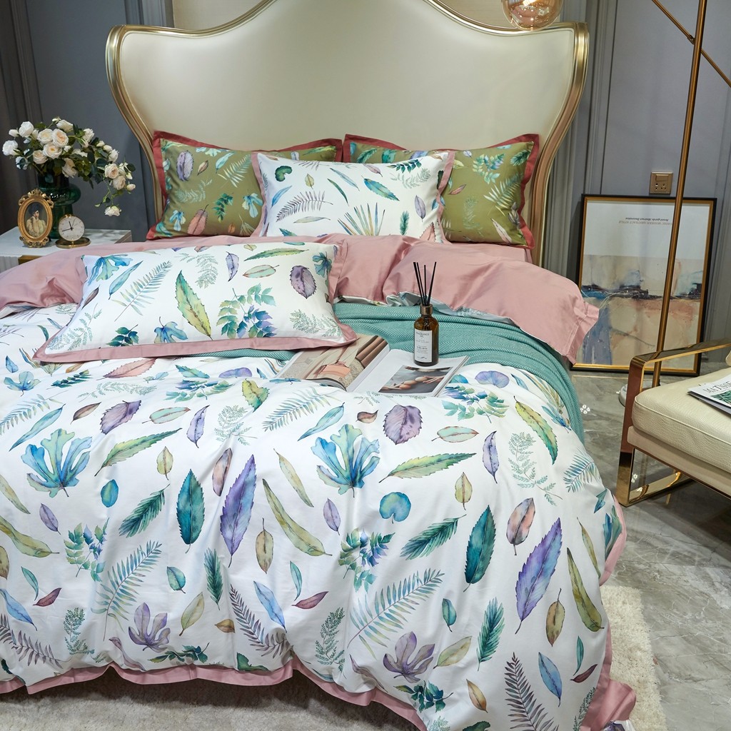 (总)优然居家纺 2025新款50支全棉纯棉印花法式双头木耳边四件套,觅棠,莫妮卡艾绿,莫妮卡罗兰,慕斯粉,薇薇安