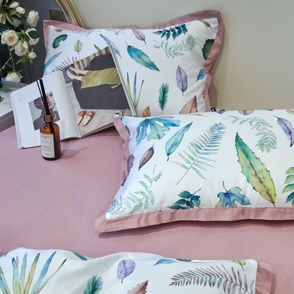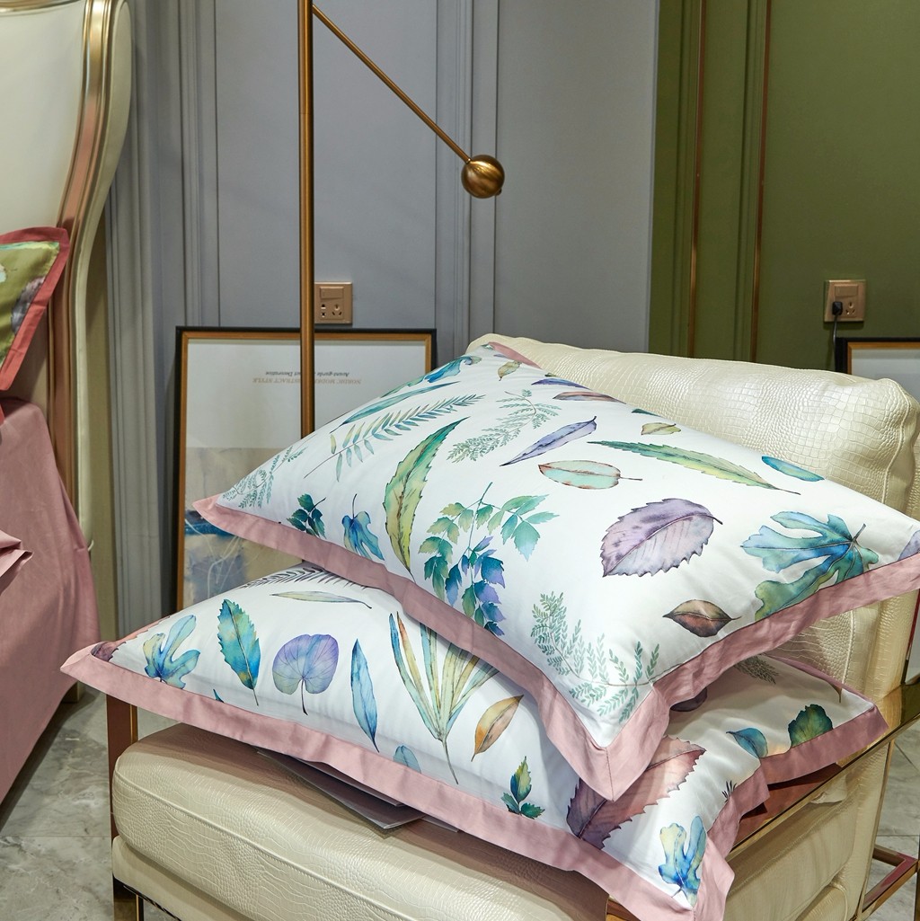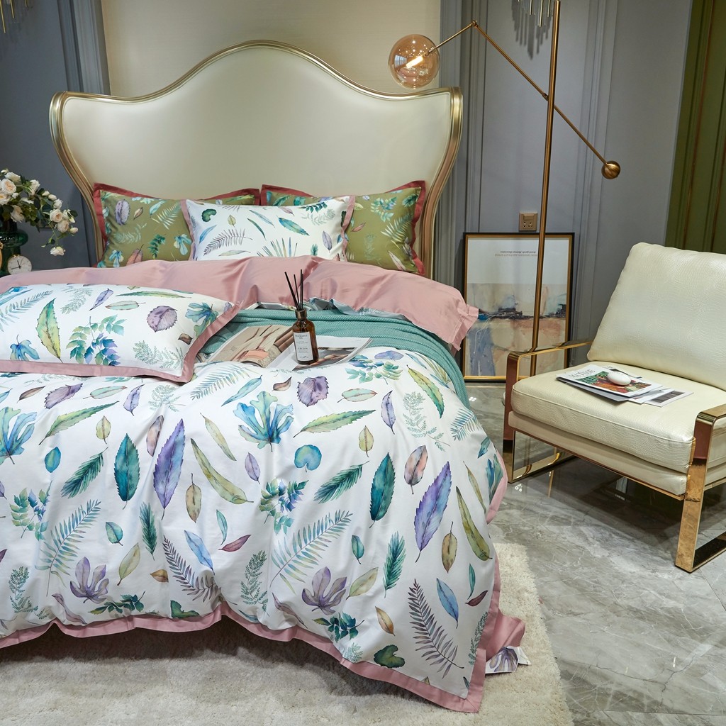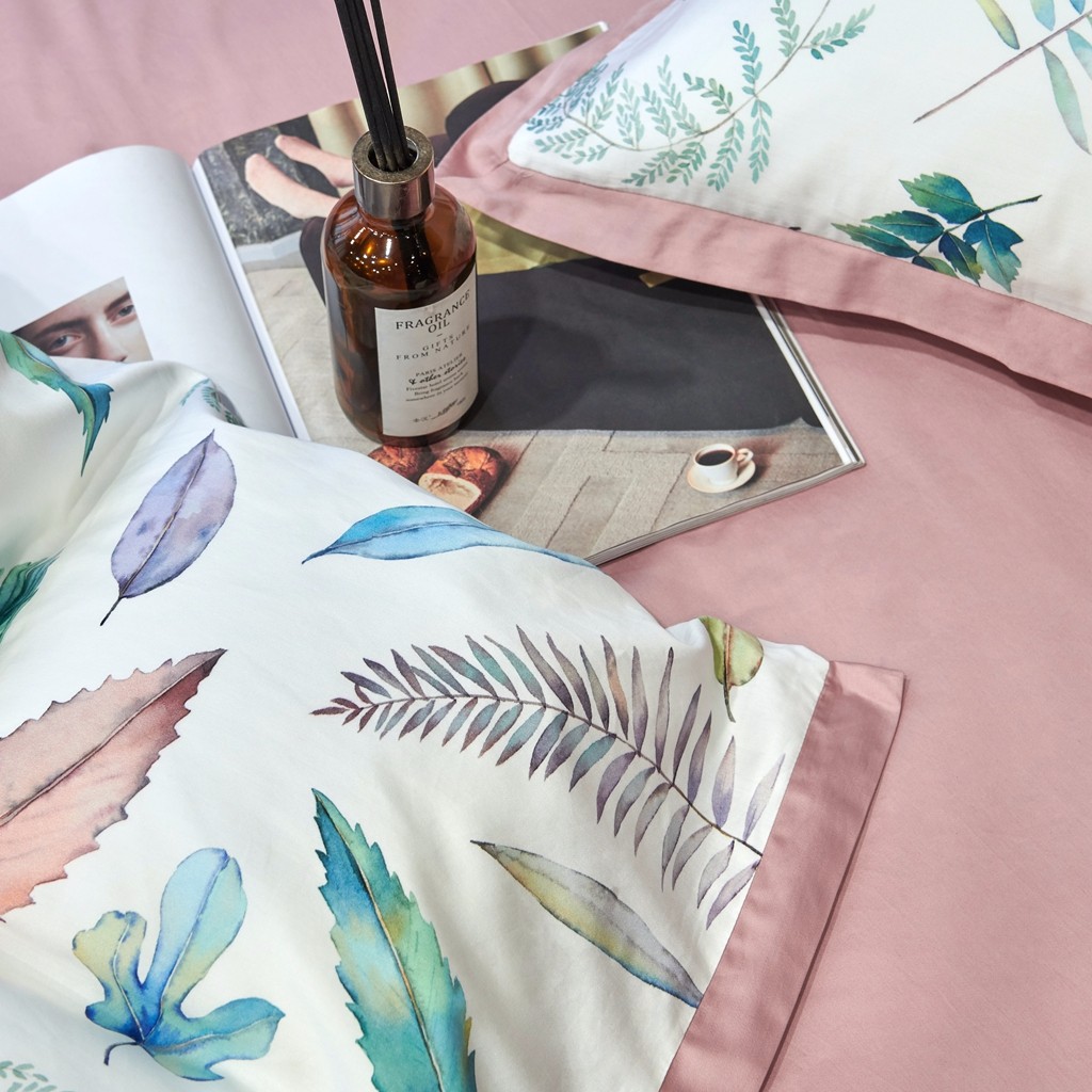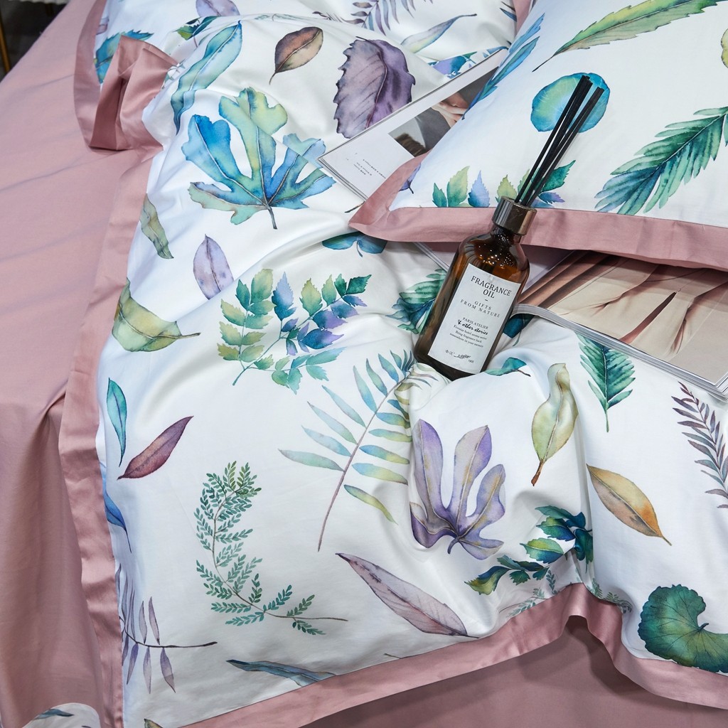 (总)优然居家纺 2025新款50支全棉纯棉印花法式双头木耳边四件套,觅棠,莫妮卡艾绿,莫妮卡罗兰,慕斯粉,薇薇安