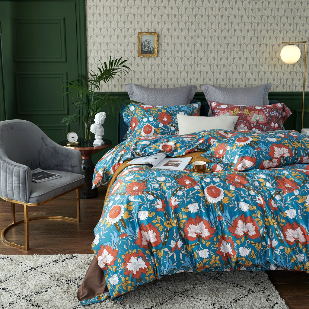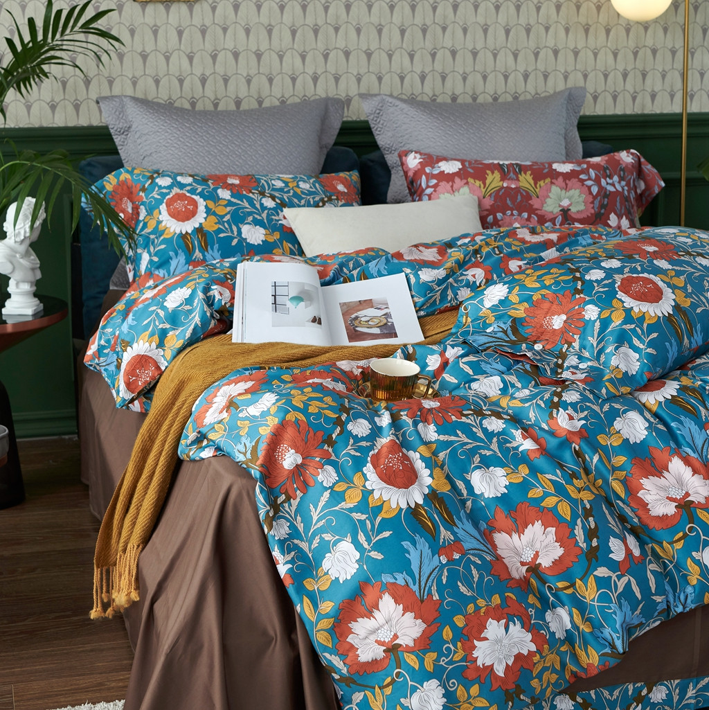 商品名称:优然居2020新款60S长绒棉活性印花四件套 特赫姆蓝