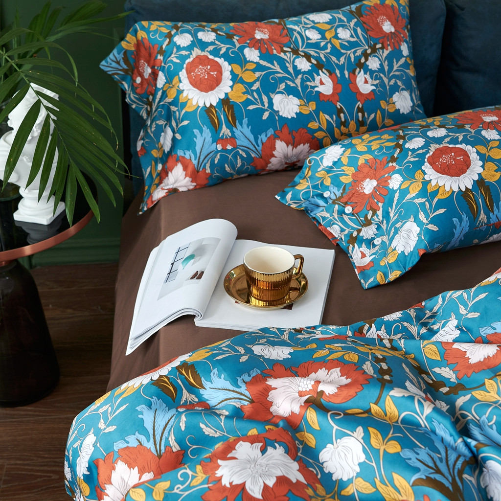 优然居2020新款60S长绒棉活性印花四件套 特赫姆蓝