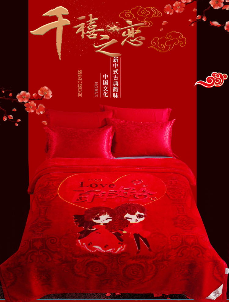 商品名称:好艺佳 婚庆系列云毯 白头偕老-大红