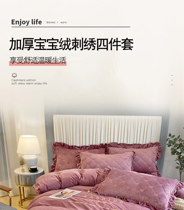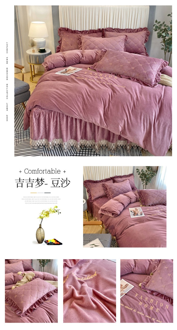 当前位置: 91家纺网 > 商品网购 > 床品套件 > 四件套 > 宝宝绒四件套 > 星尚家纺 2020新款宝宝绒夹棉床裙床盖四件套吉吉梦- 豆沙