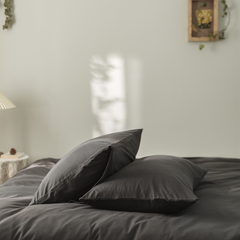 • 91家纺网 家纺一手货源 找家纺 原研家居 2020全棉针织棉纯色系列单枕套一对 碳灰