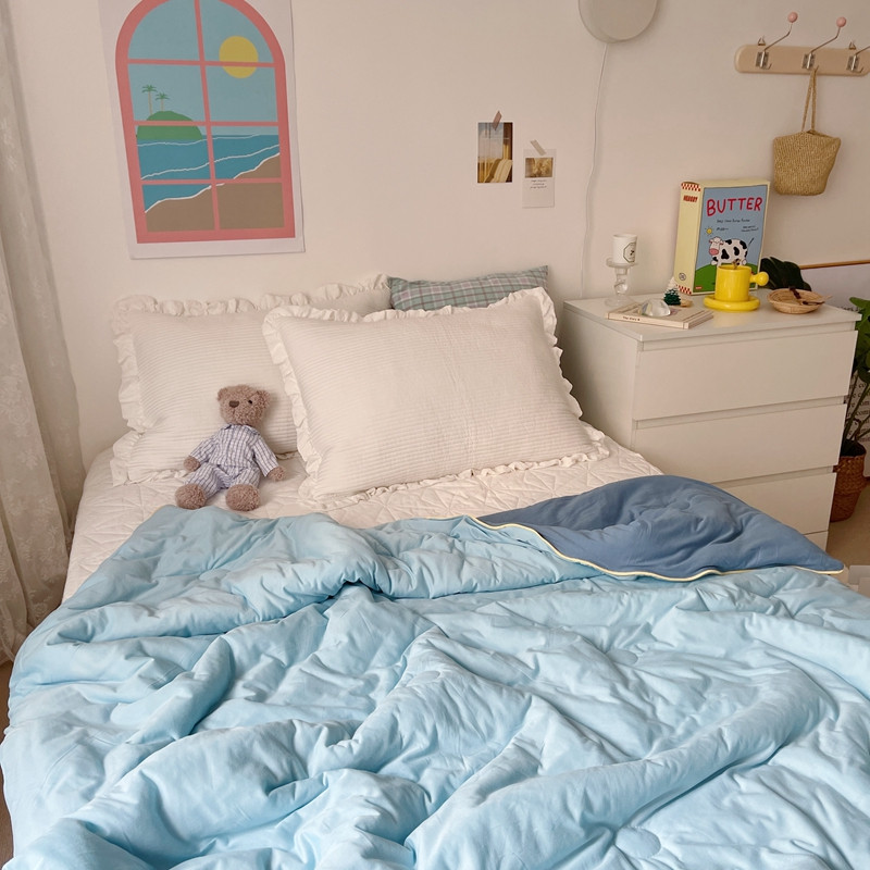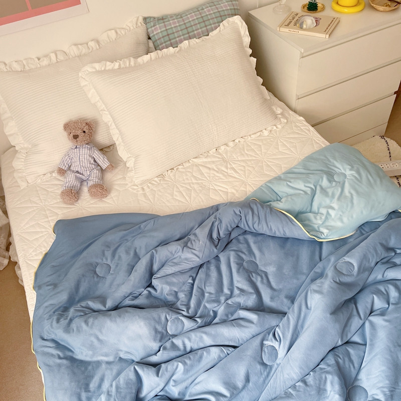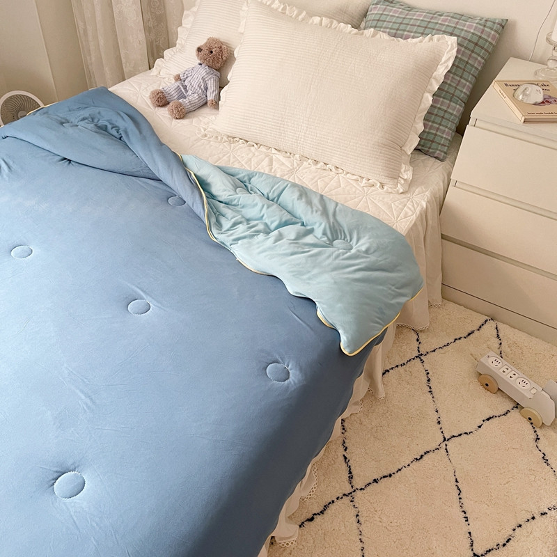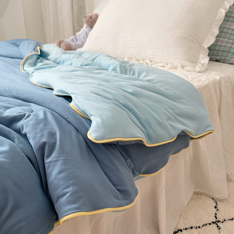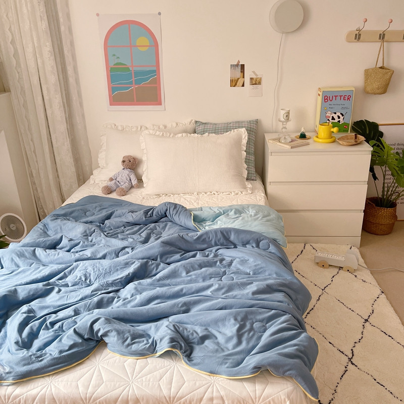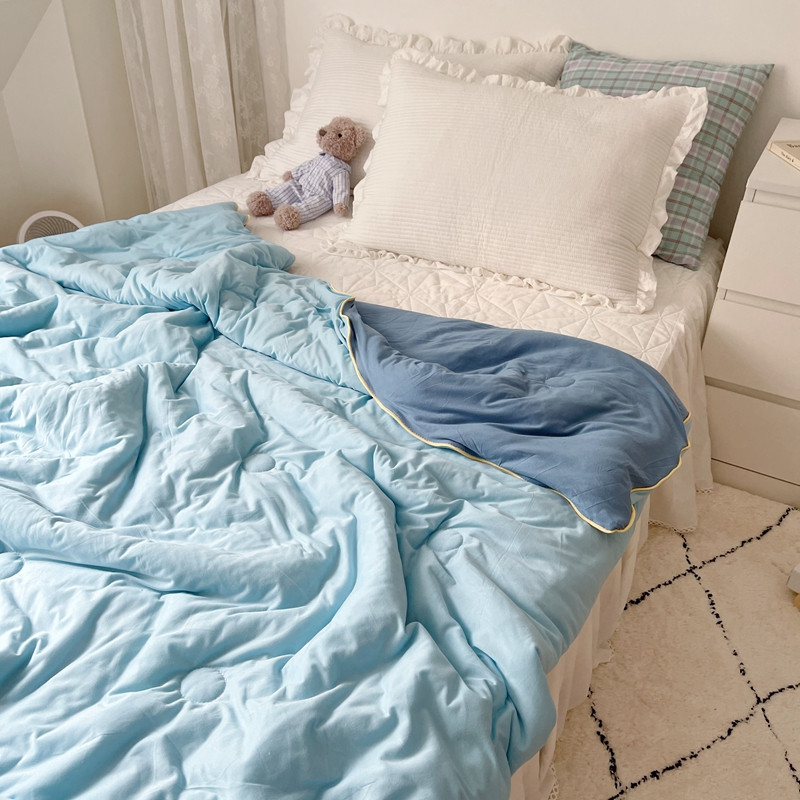 星期八 2021新款马卡龙大豆针织棉夏被 深蓝-浅蓝