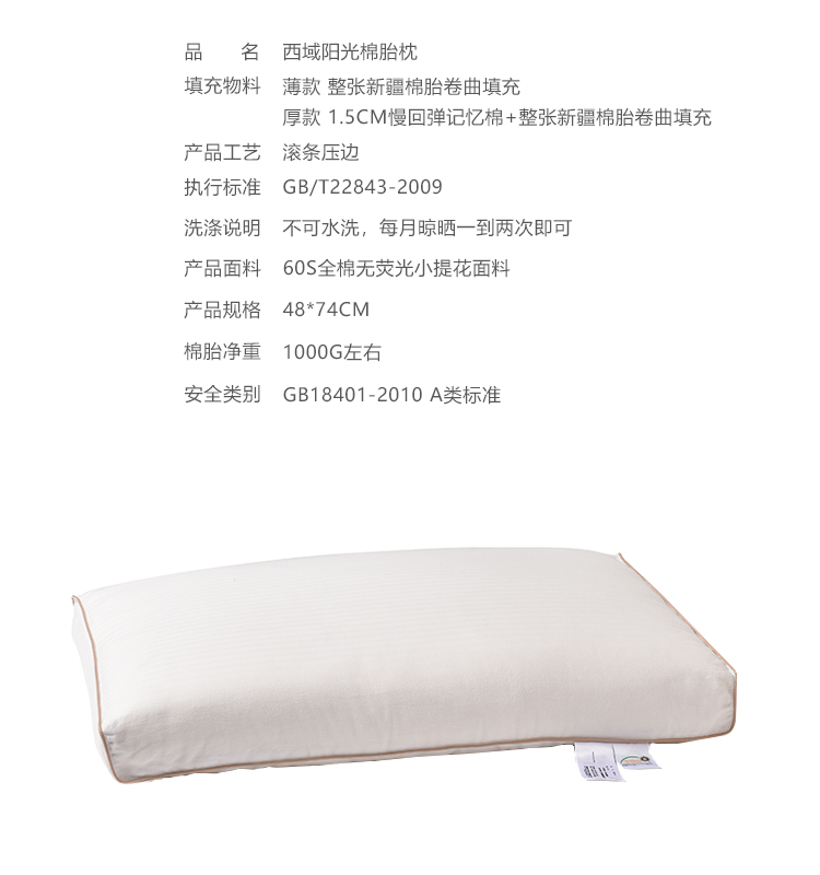 西域阳光棉胎枕低48*74