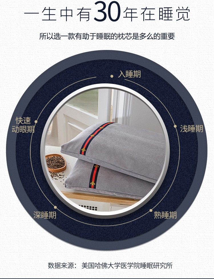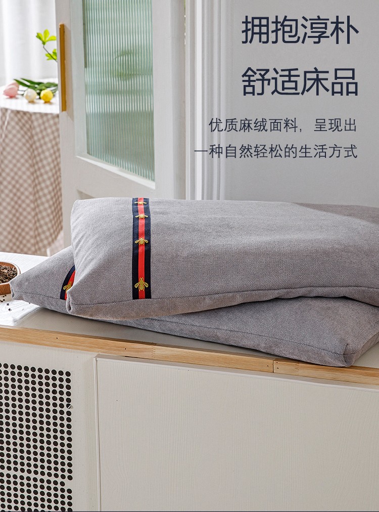 总.小蜜蜂新款织带麻绒荞麦枕35*55