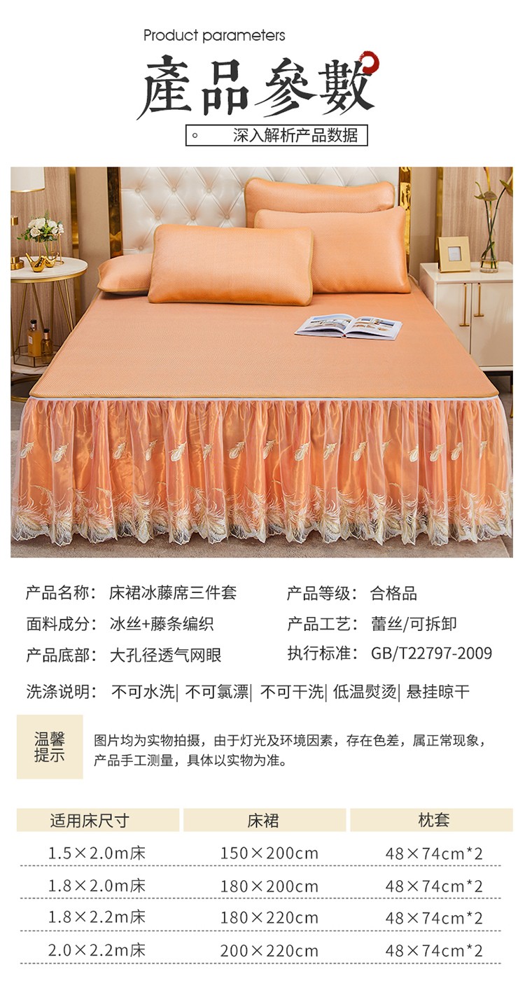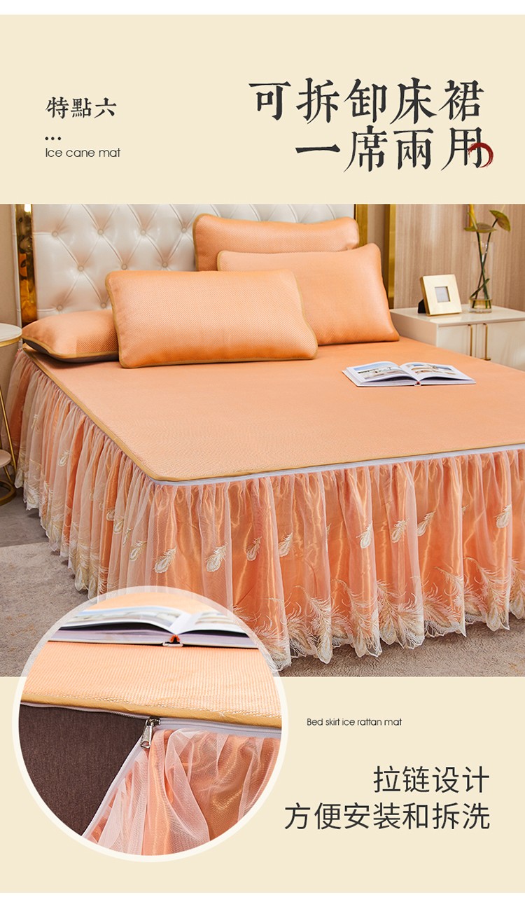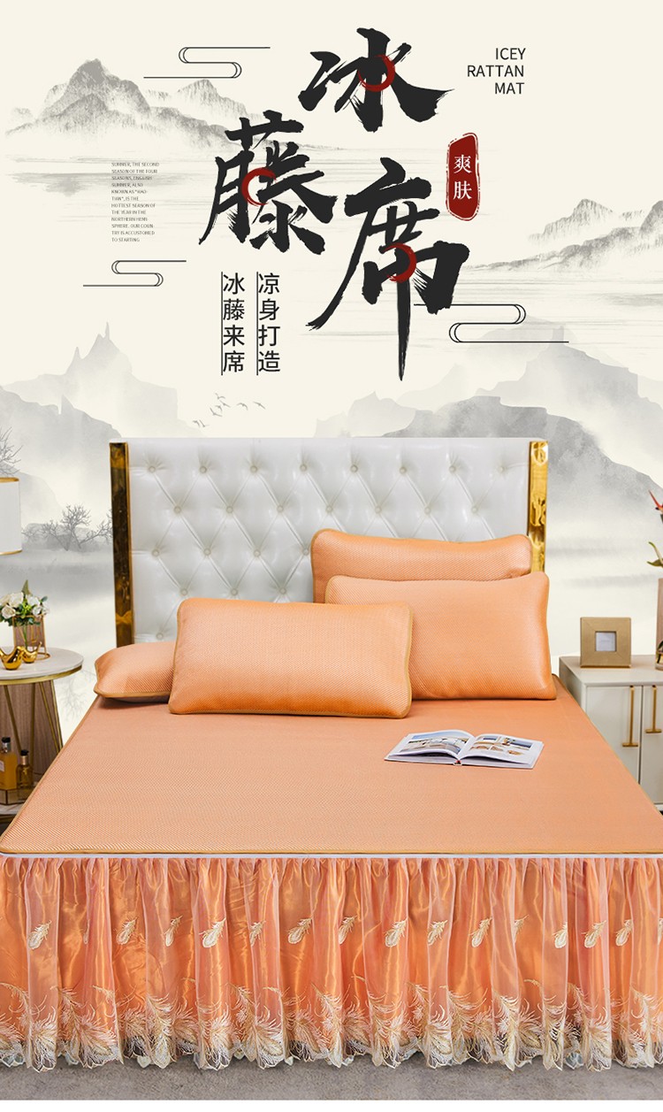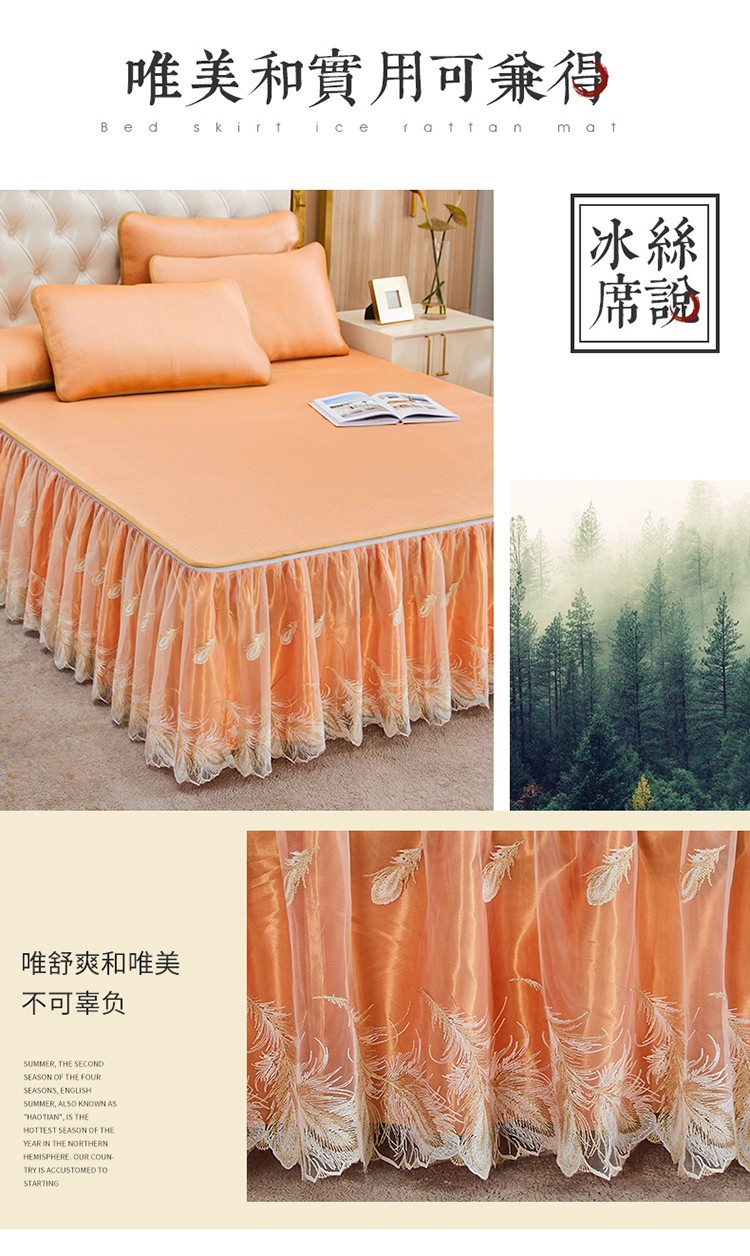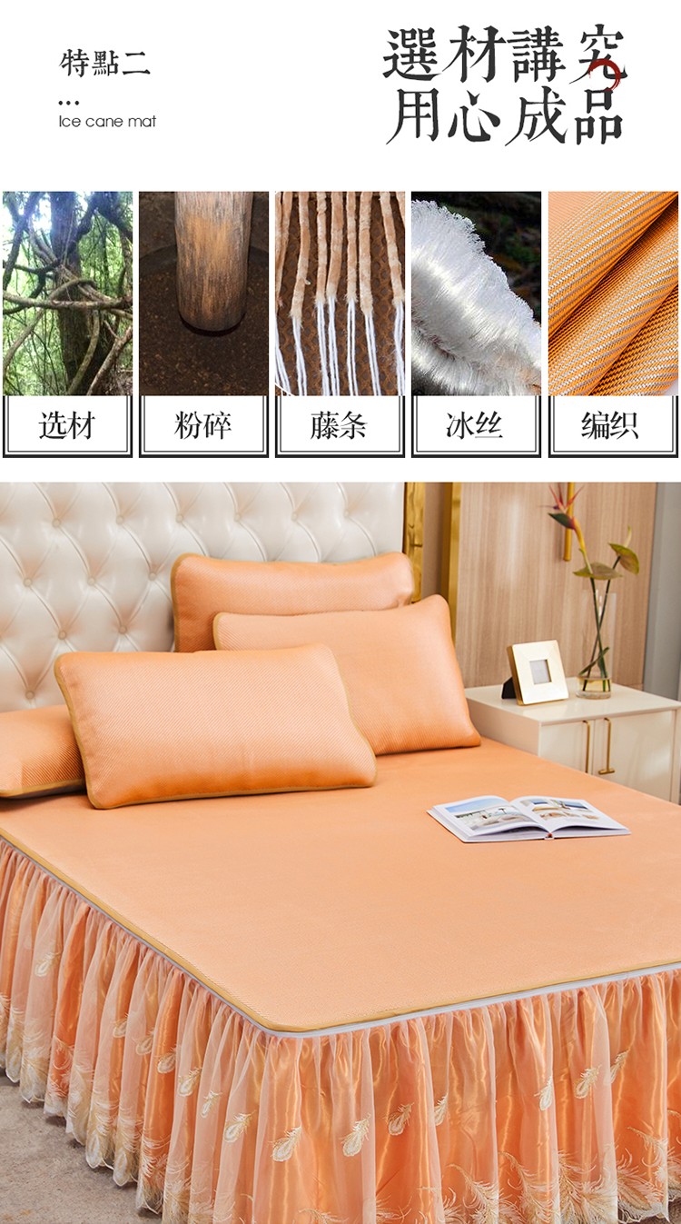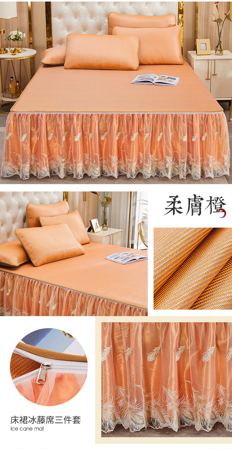 商品名称:网红馆 2025新款蕾丝花边宽边冰藤席 柔肤橙