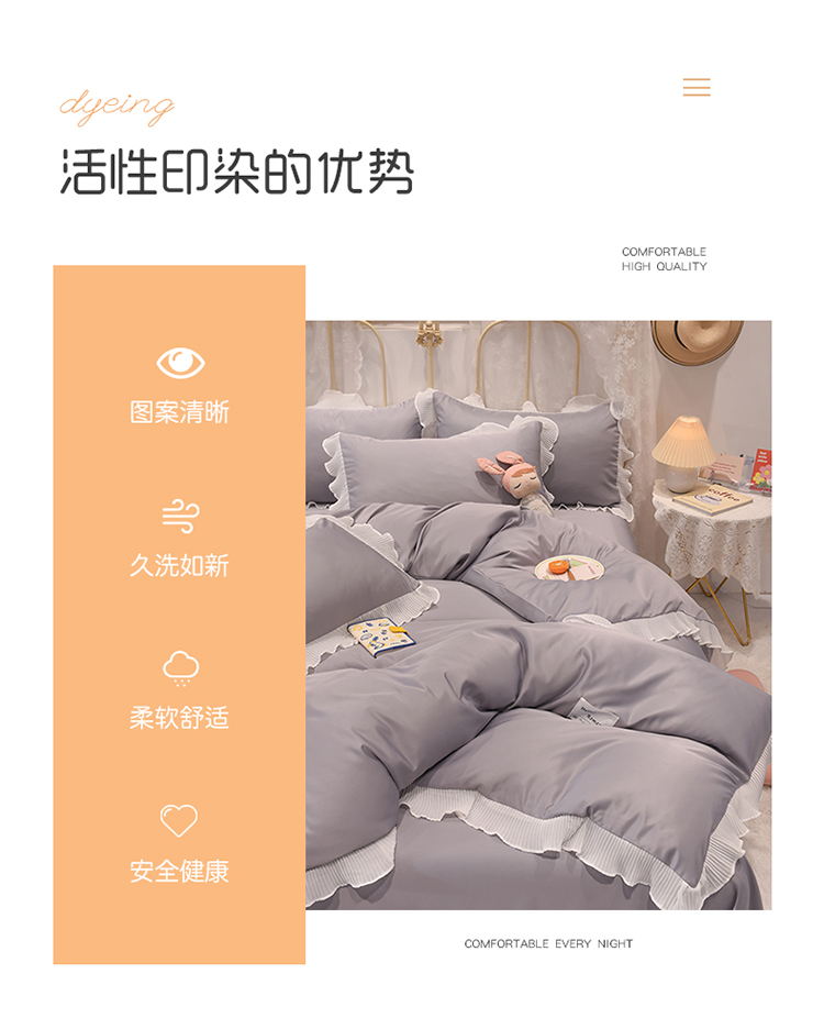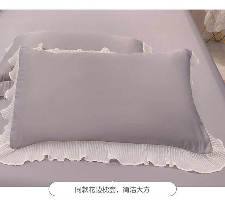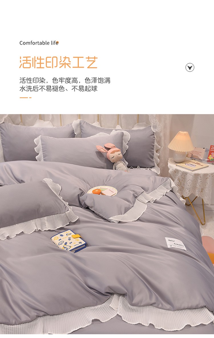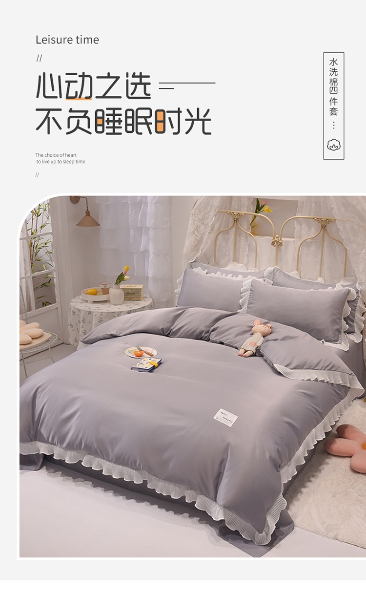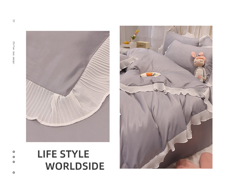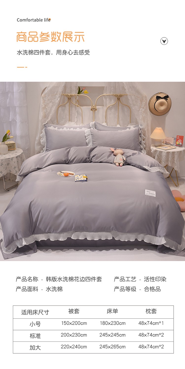 商品名称:2024新款韩版公主风雪纺花边水洗棉四件套 诗语银灰