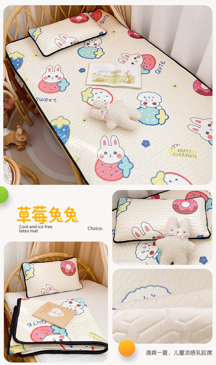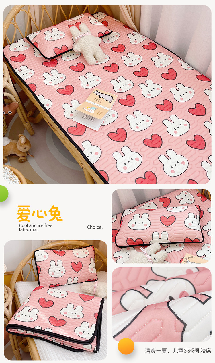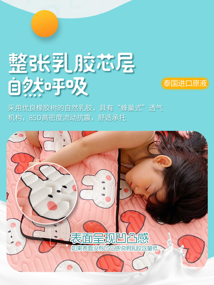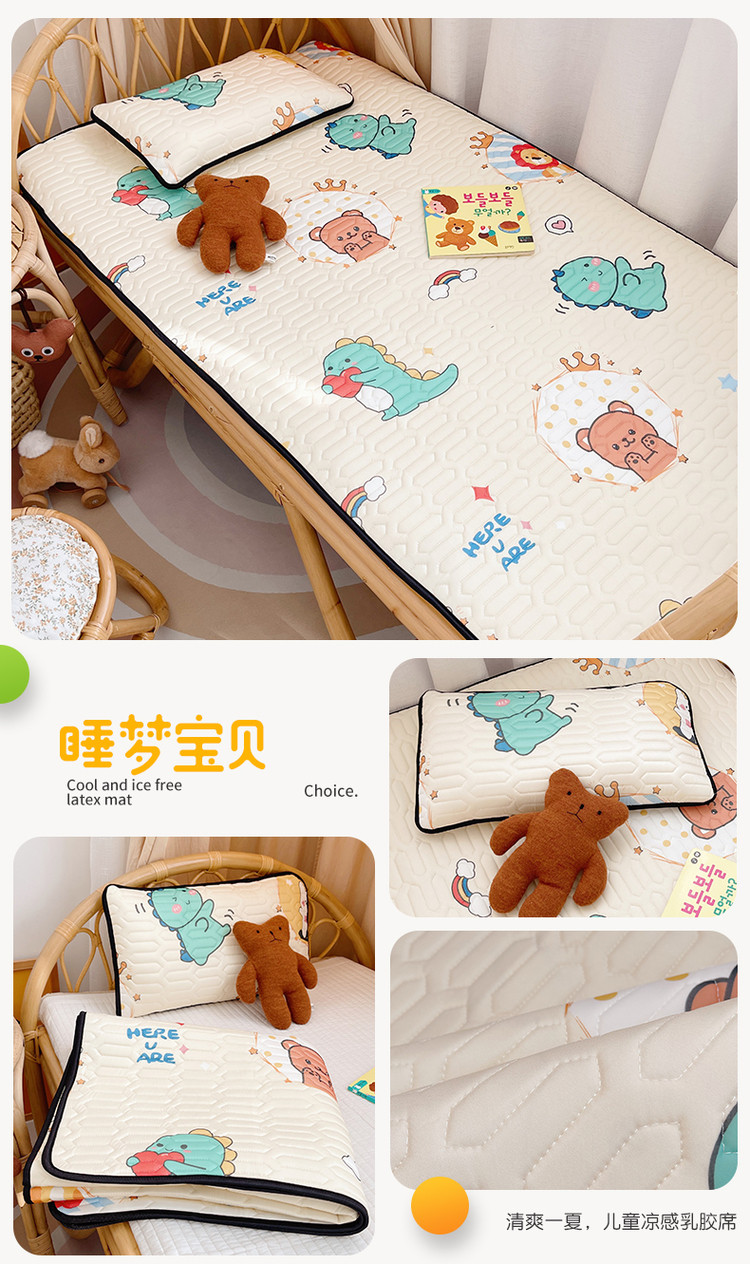 (总)鱼宝 2022新款儿童凉感乳胶席两件套,爱心兔,彩虹恐龙,草莓兔兔,航天员,老虎狮子,魔法美人鱼,睡梦宝贝,涂鸦挖机,小兔乖乖,笑笑虎