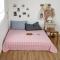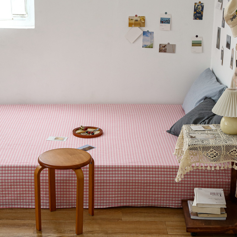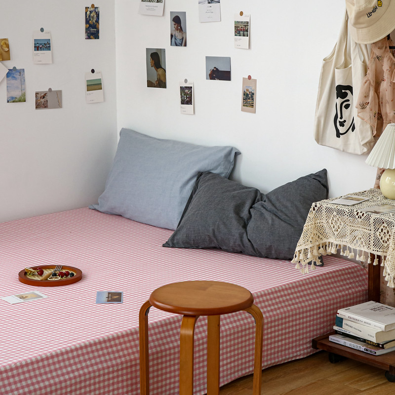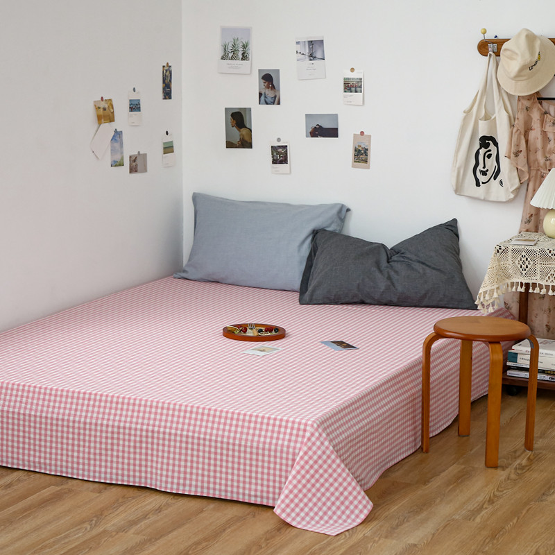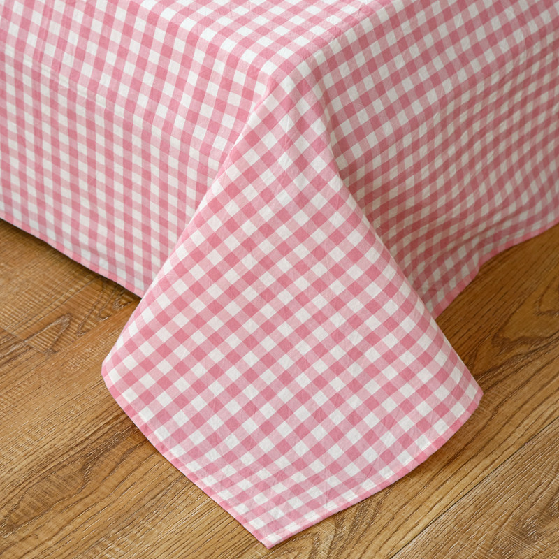 安莱生活 2021新款色织全棉水洗棉单床单 玫粉小格