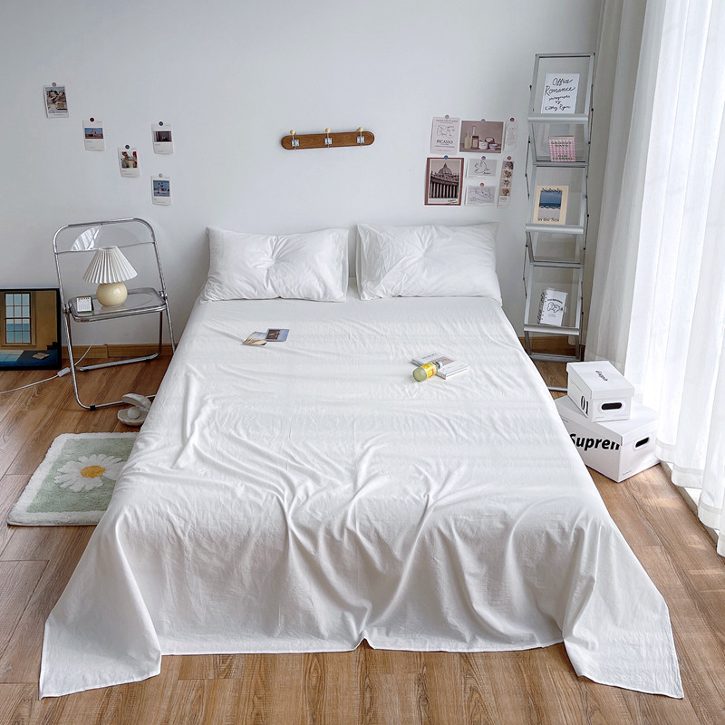 安莱生活 2021新款全棉水洗棉单床单 盐白