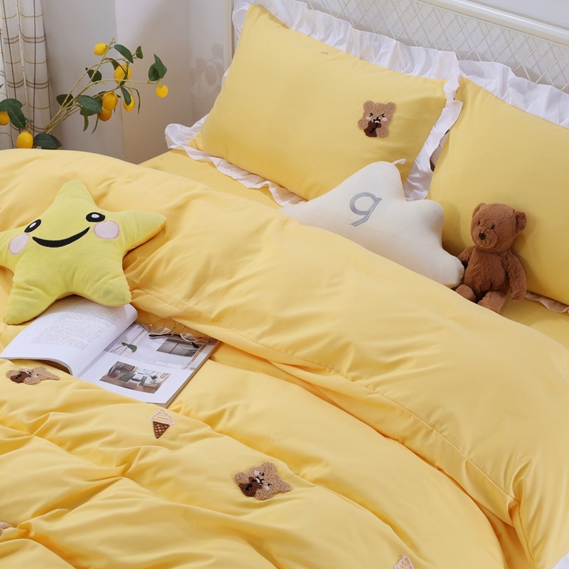 雨帆 2021新款毛巾绣四件套 曲奇熊黄
