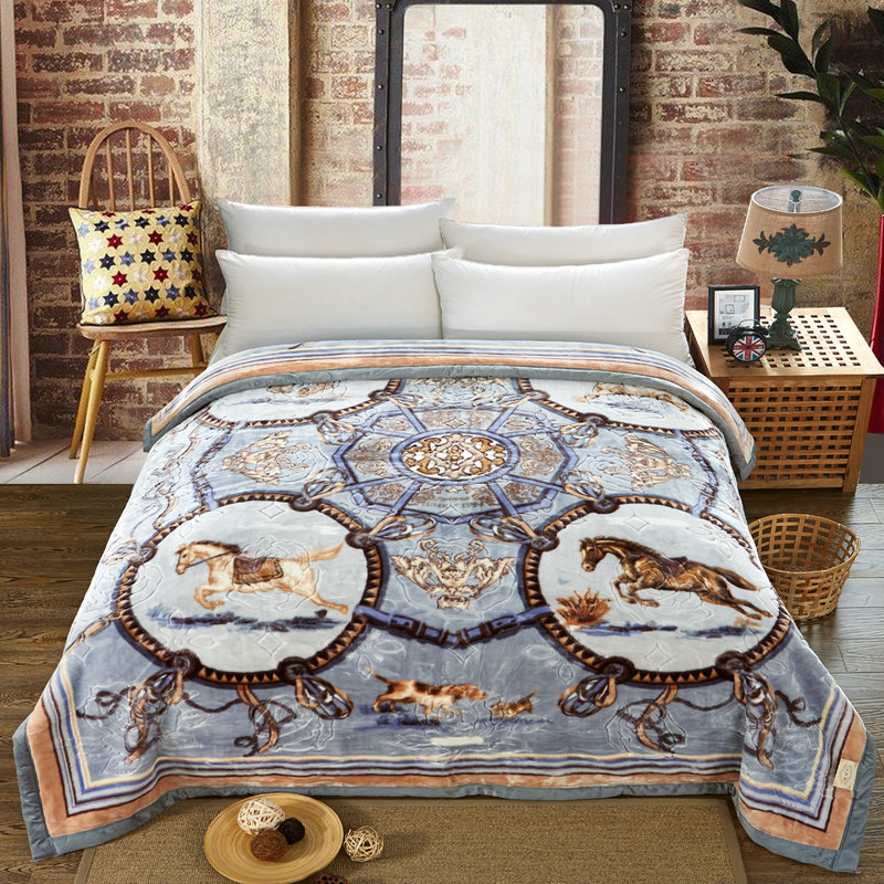 新月家纺2021新款水晶绒毛毯毯子骏马奔腾