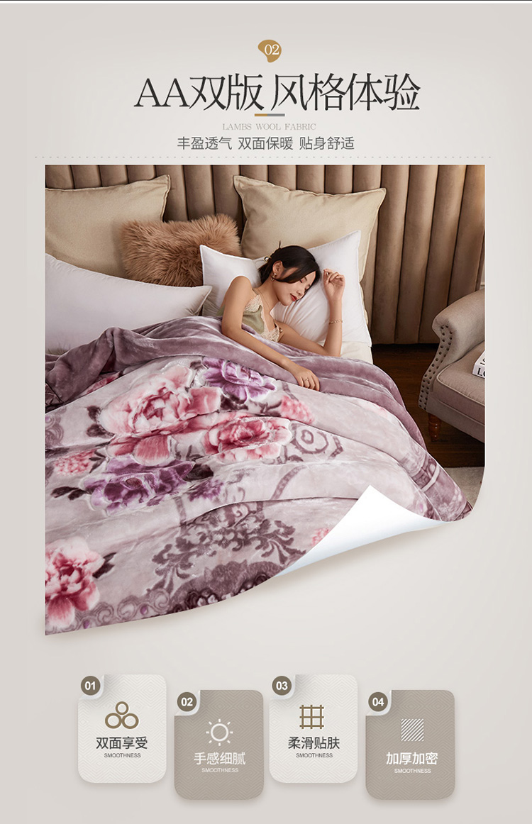 当前位置: 91家纺网 > 商品网购 > 毛毯休闲毯绒毯 > 毛毯 > 拉舍尔毛毯双层加厚水晶牛奶魔法法莱绒冬季被鸢尾幽香