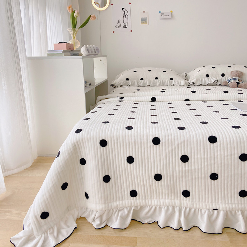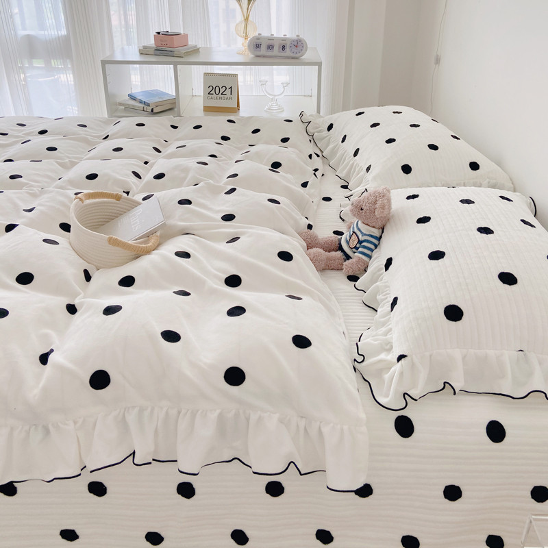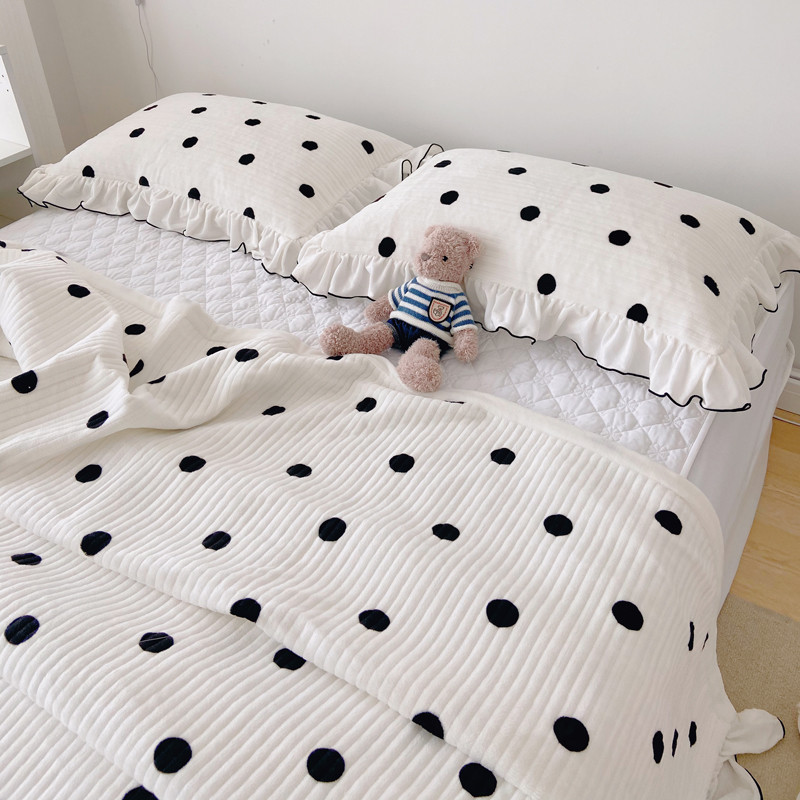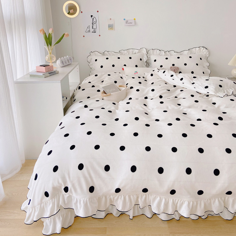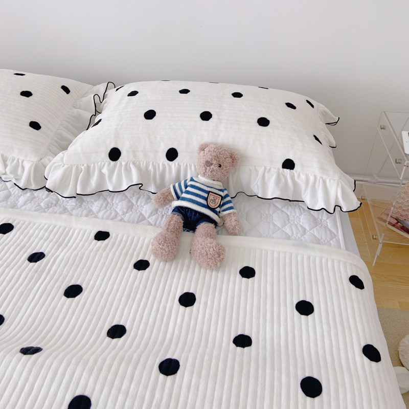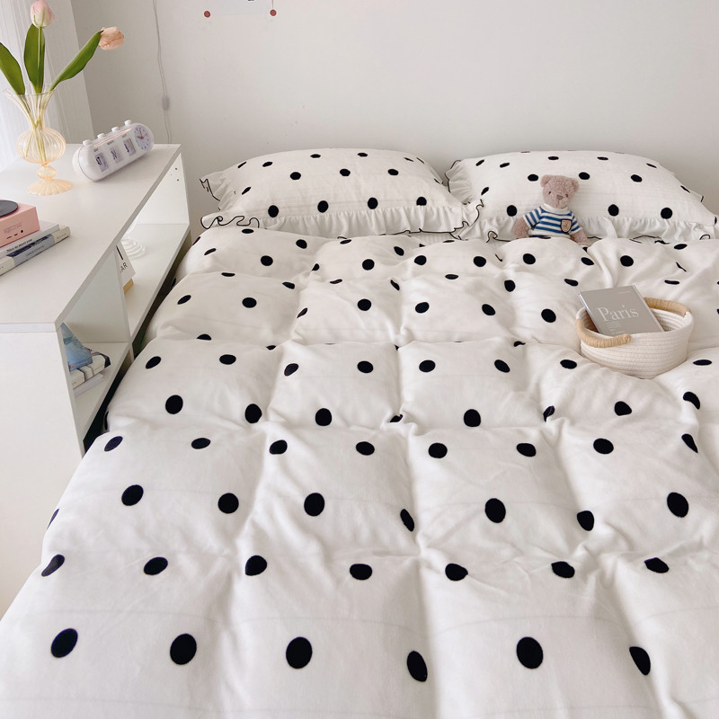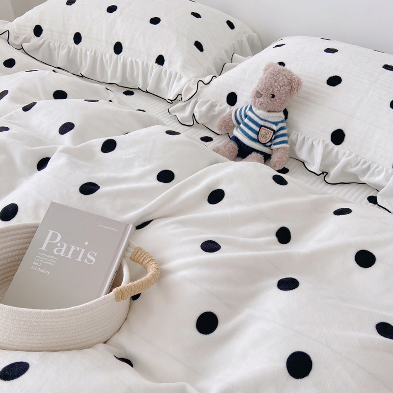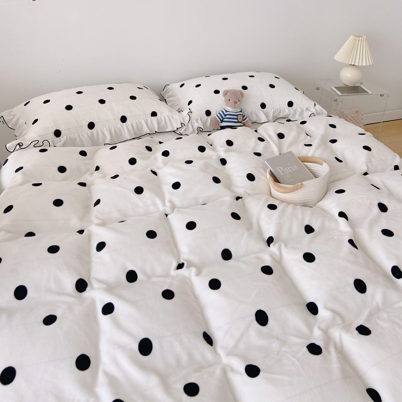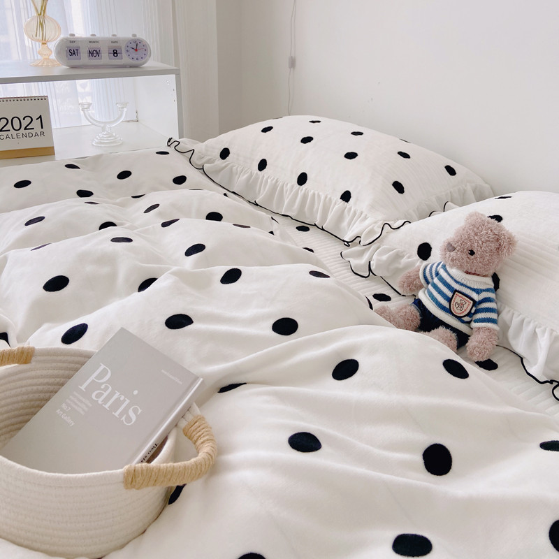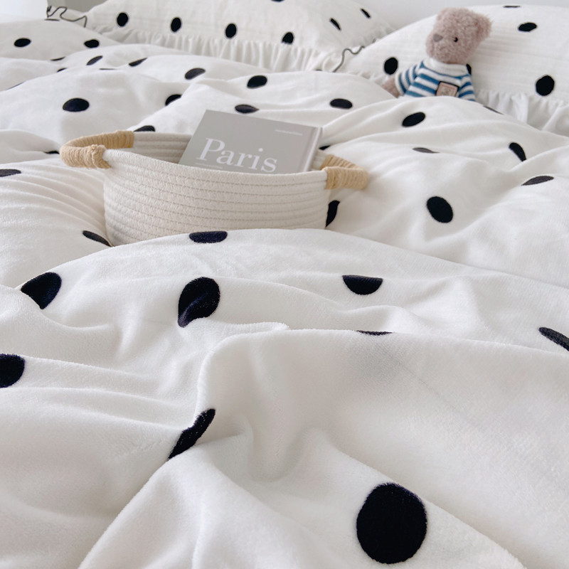 漫调 2021新款ins风波点黑白系列小清新牛奶绒床盖四件套 经典波点