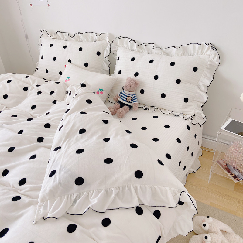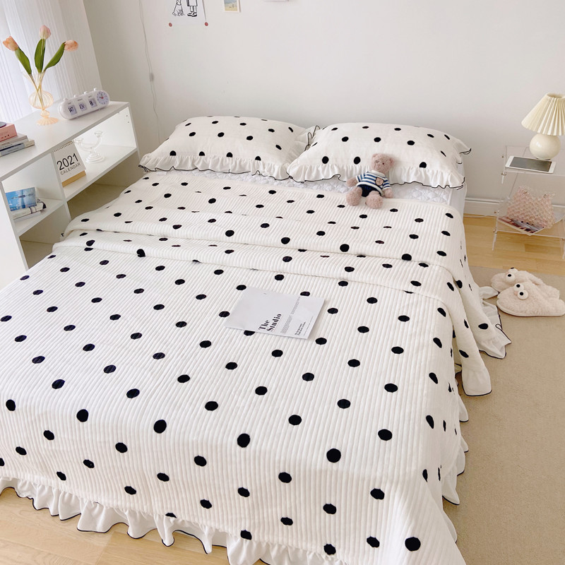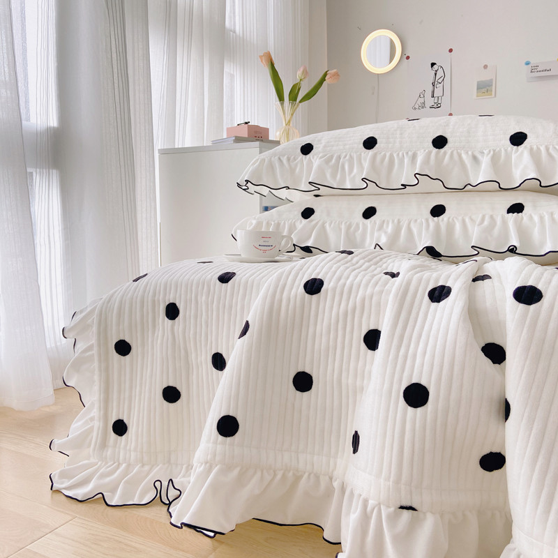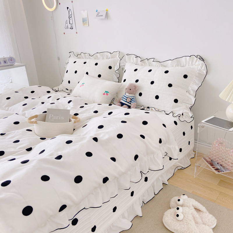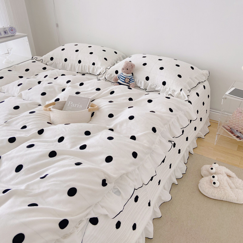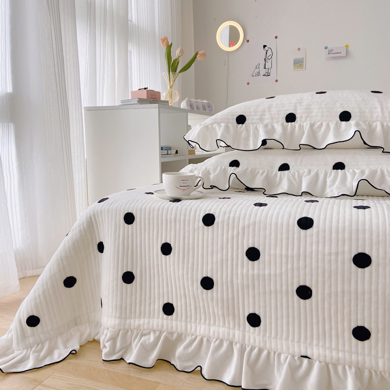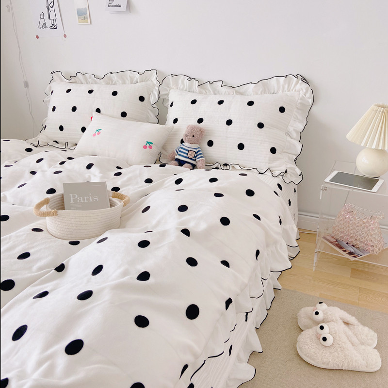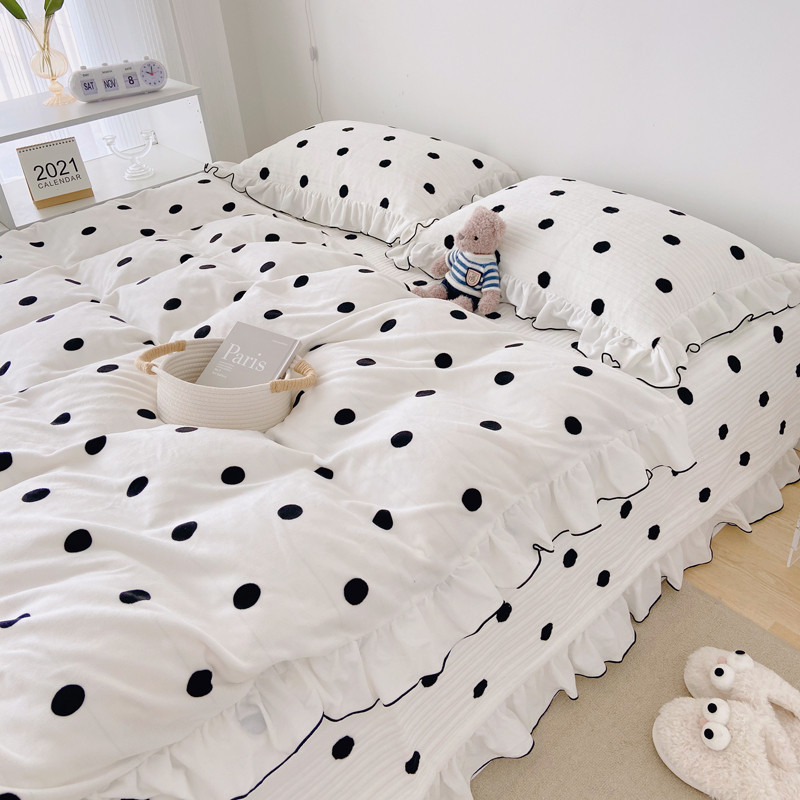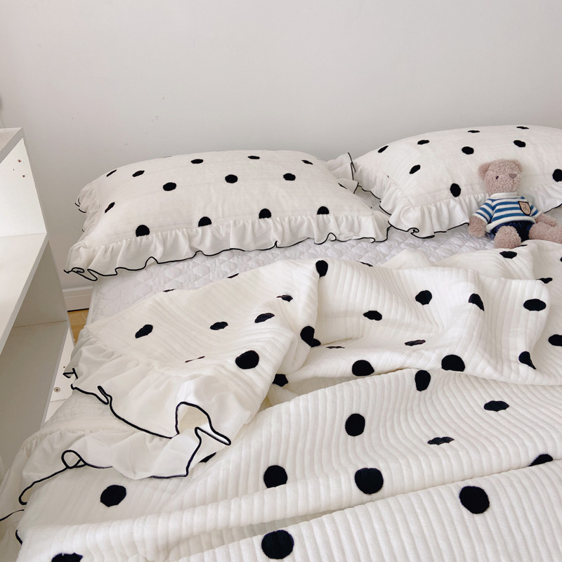 漫调 2021新款ins风波点黑白系列小清新牛奶绒床盖四件套 经典波点