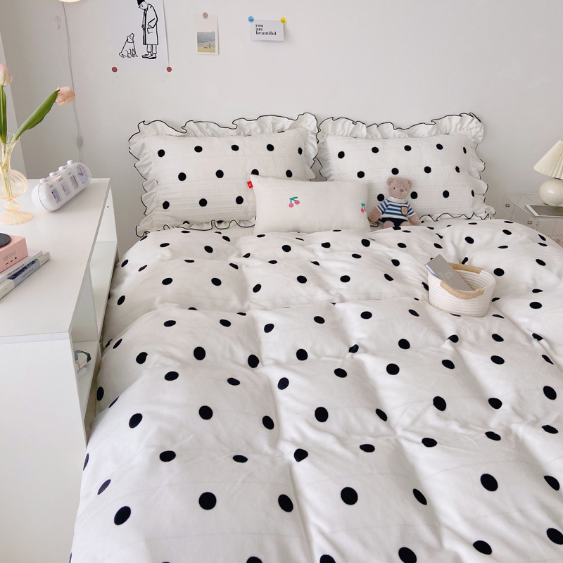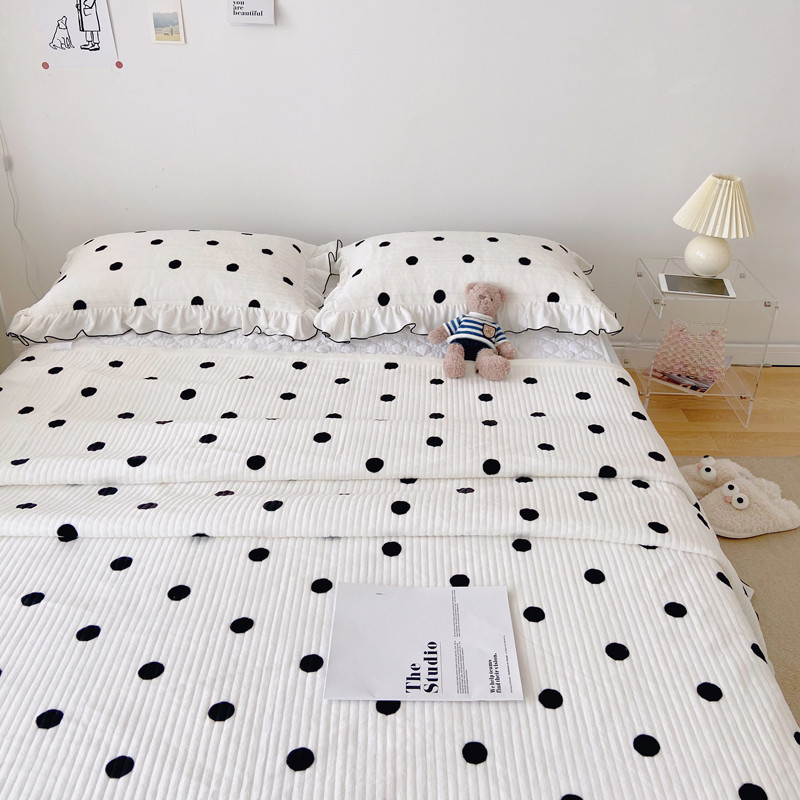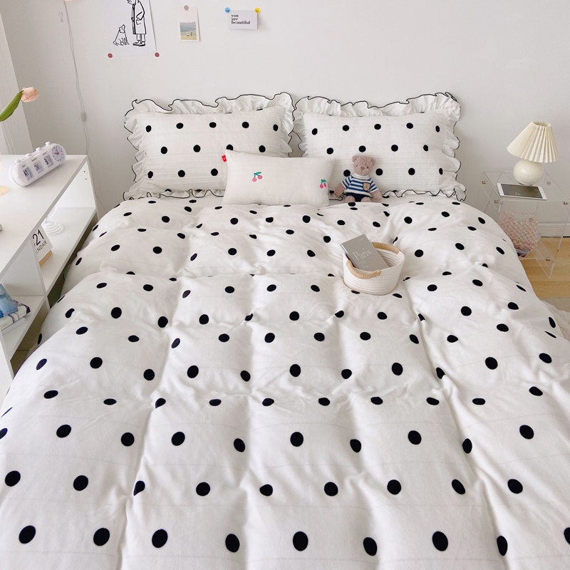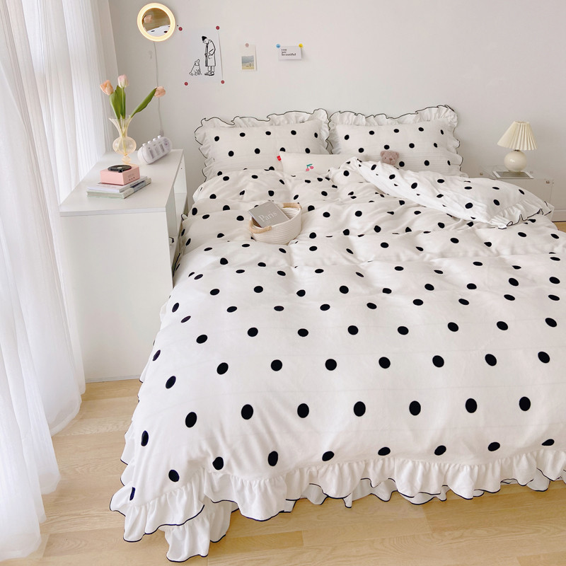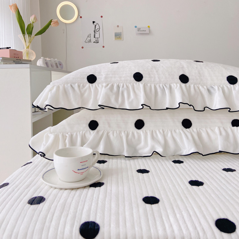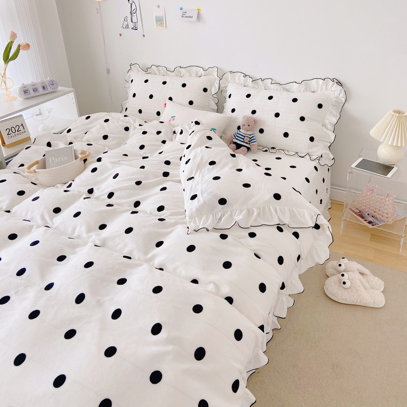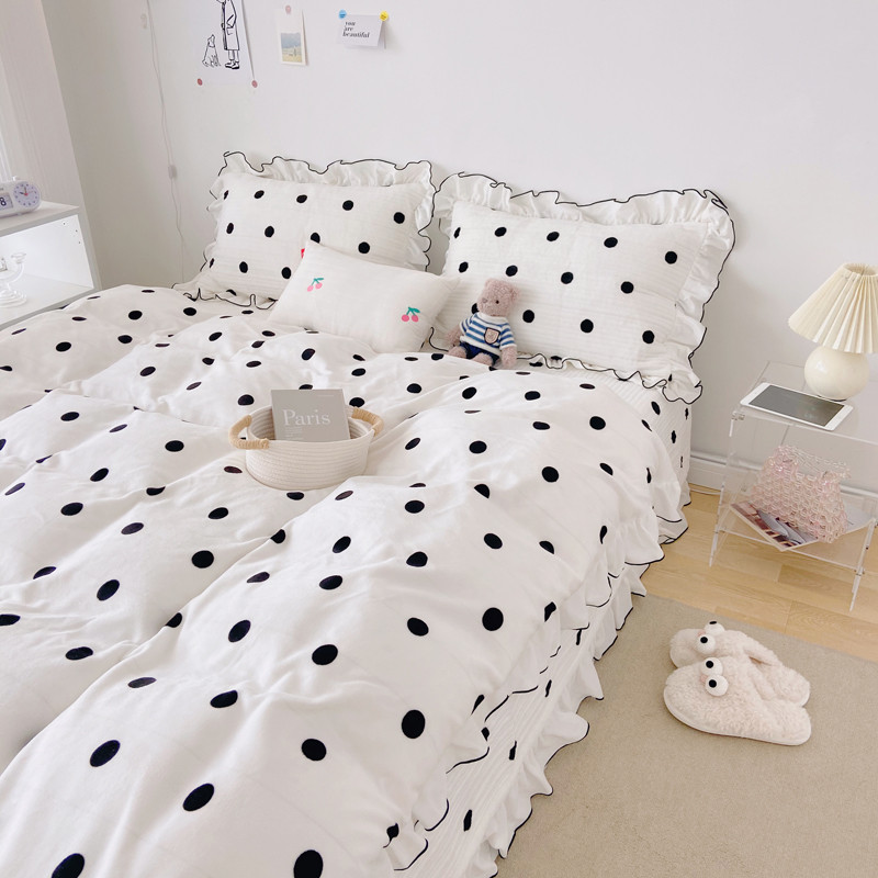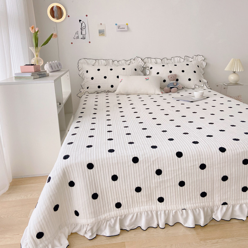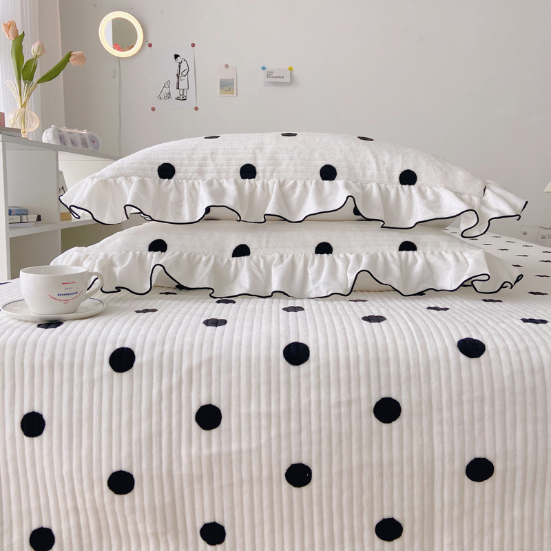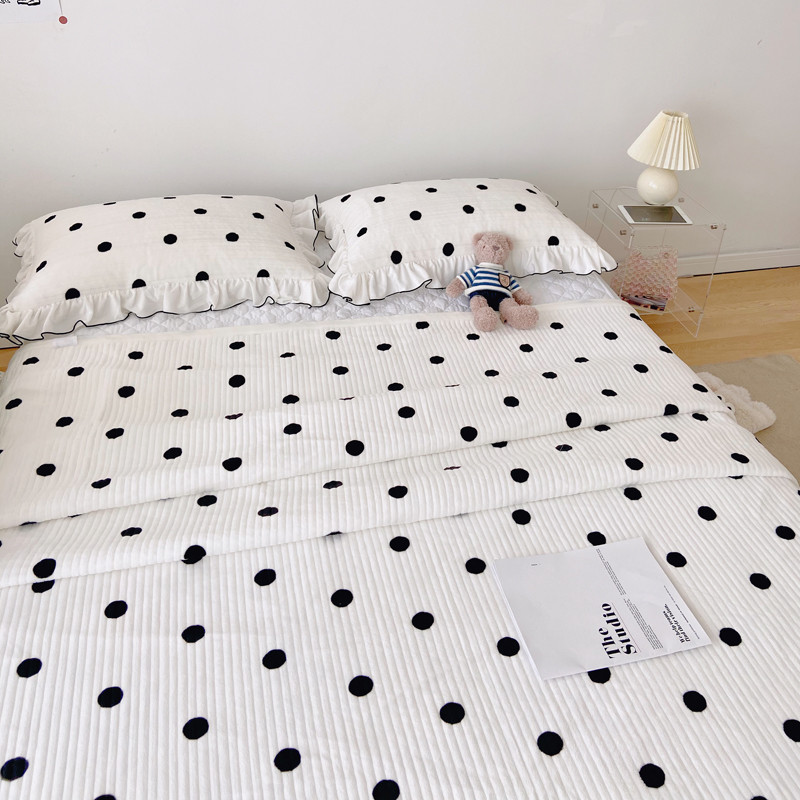 漫调 2021新款ins风波点黑白系列小清新牛奶绒床盖四件套 经典波点