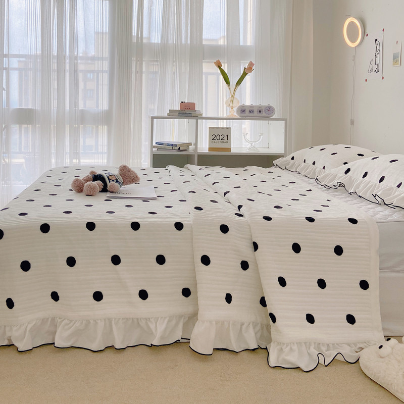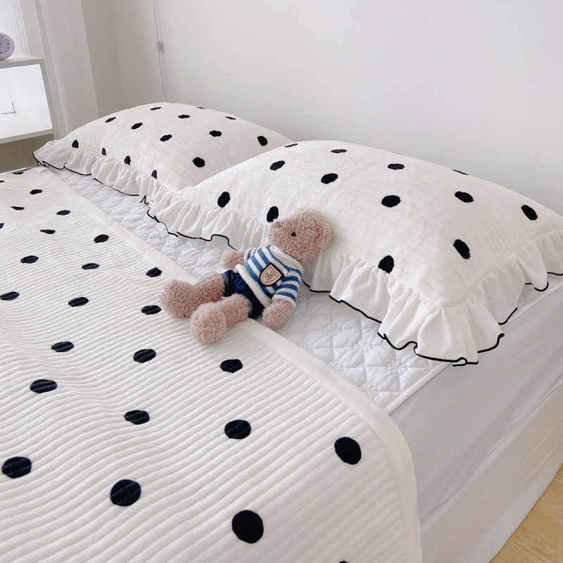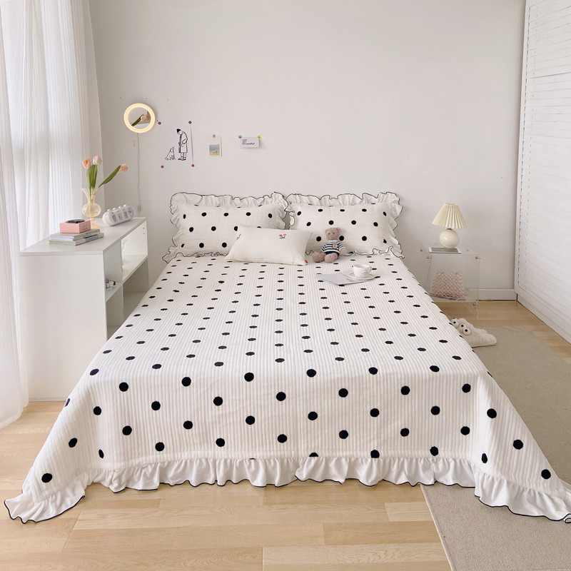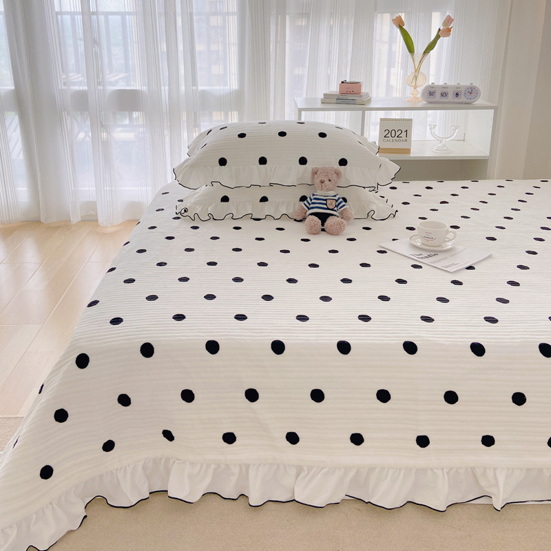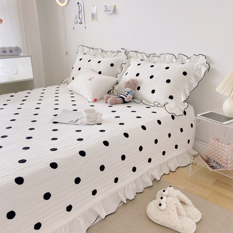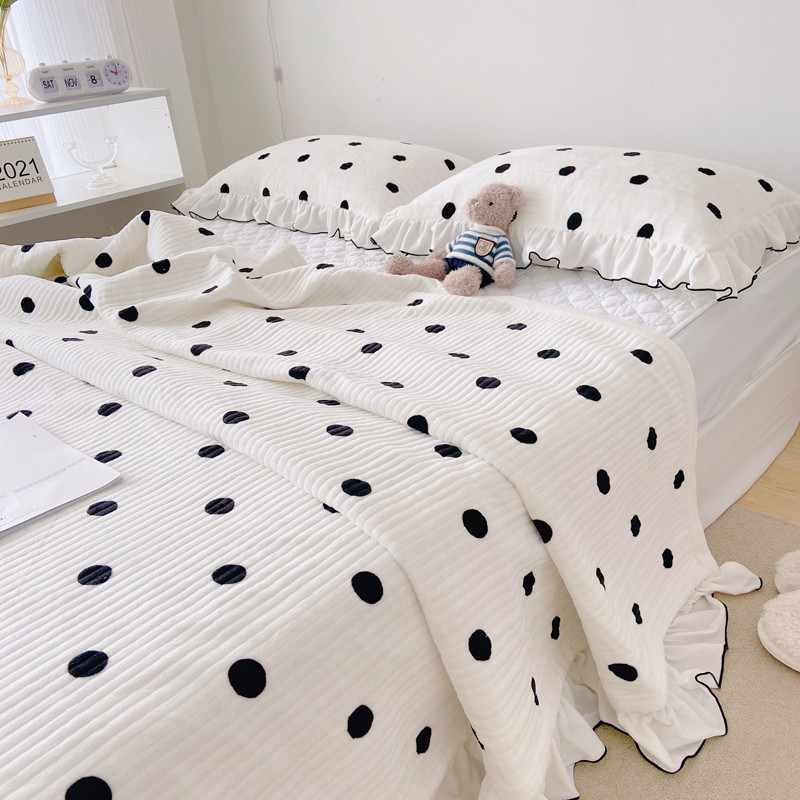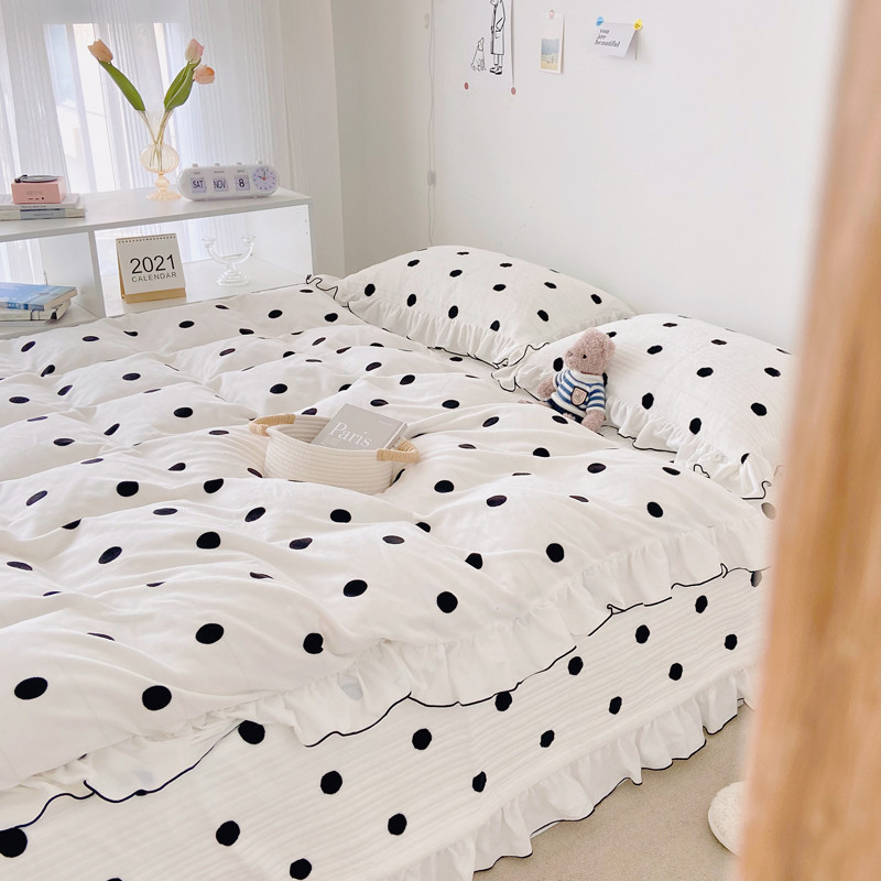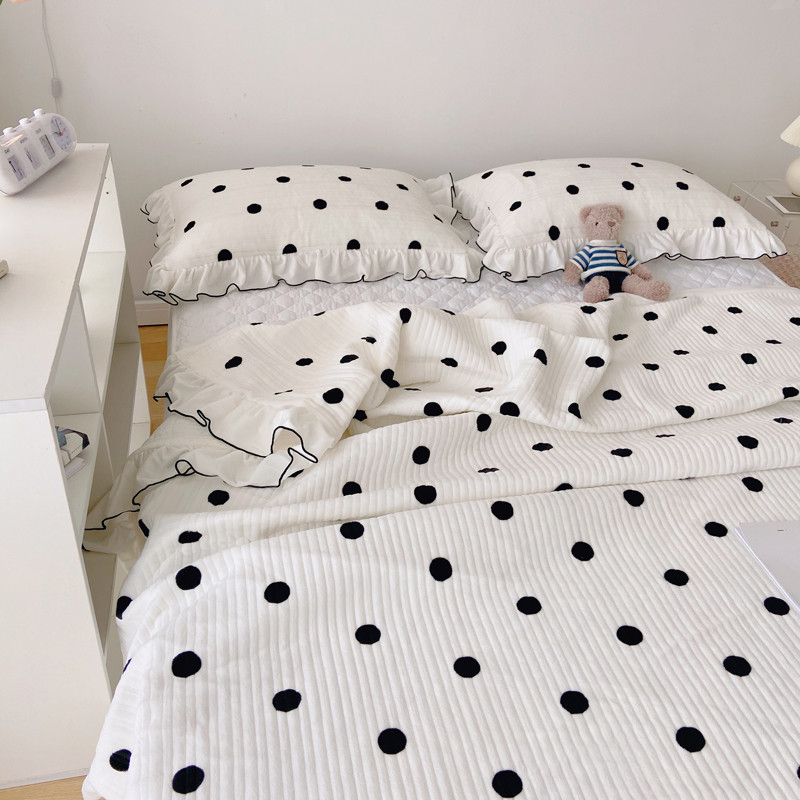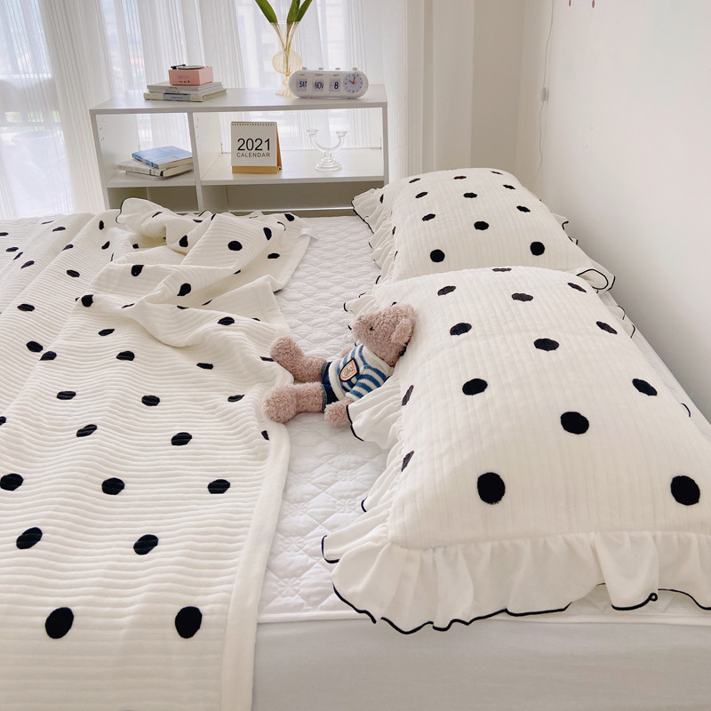 漫调 2021新款ins风波点黑白系列小清新牛奶绒床盖四件套 经典波点