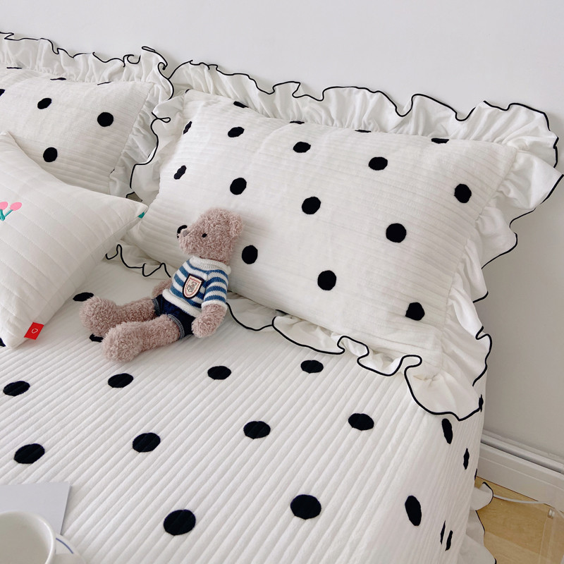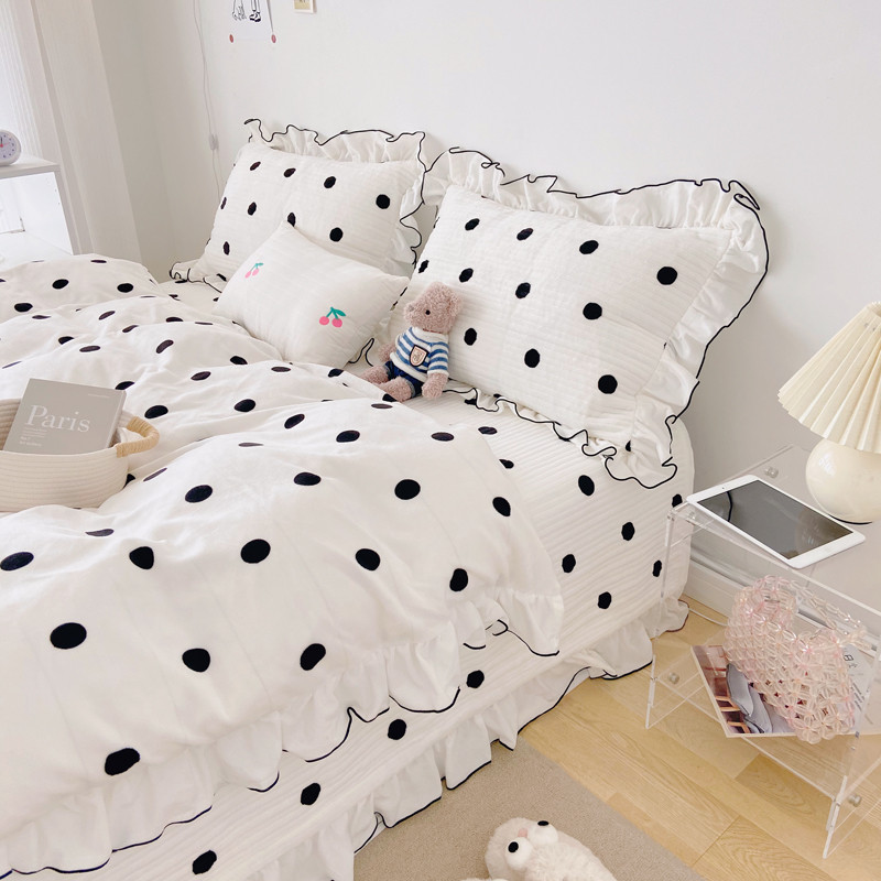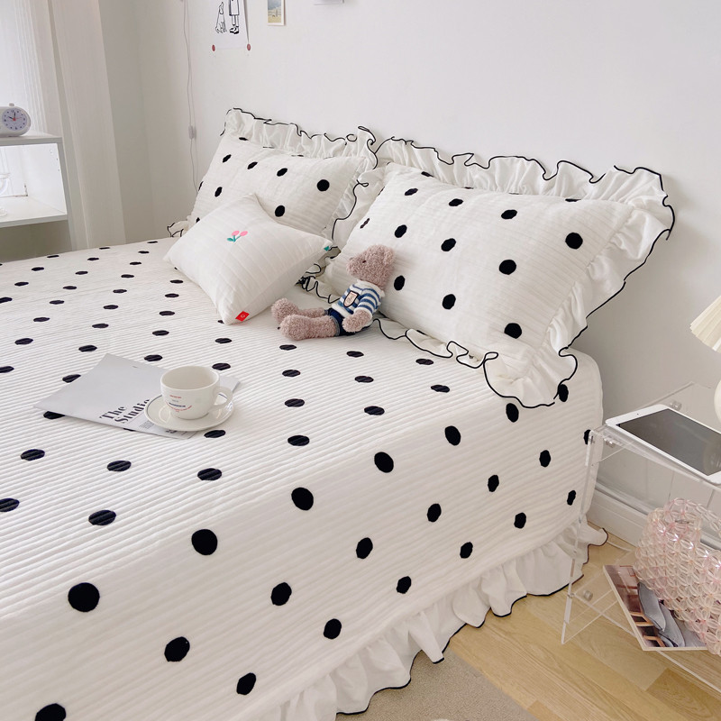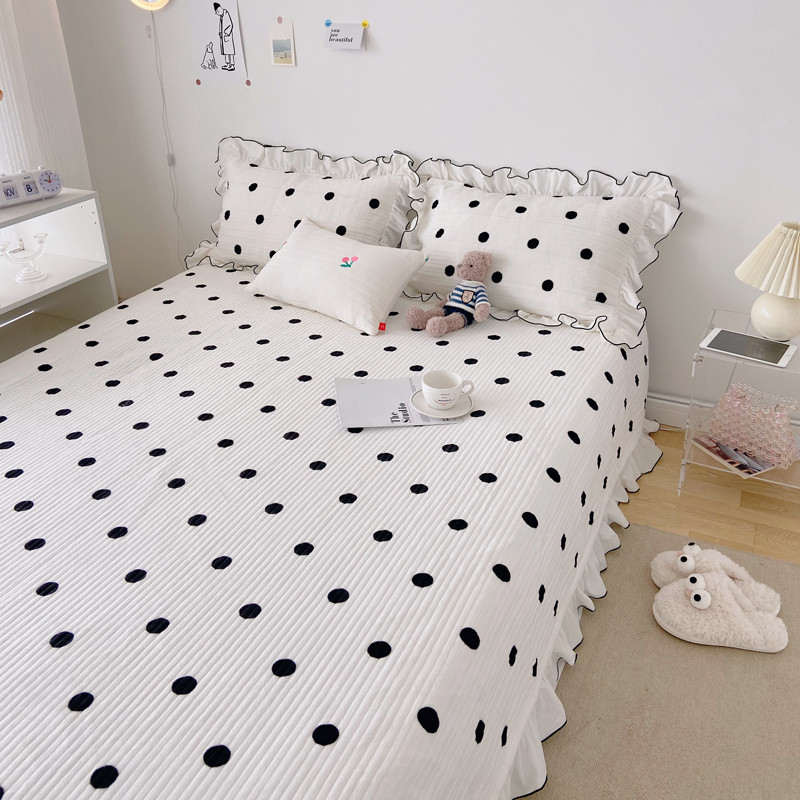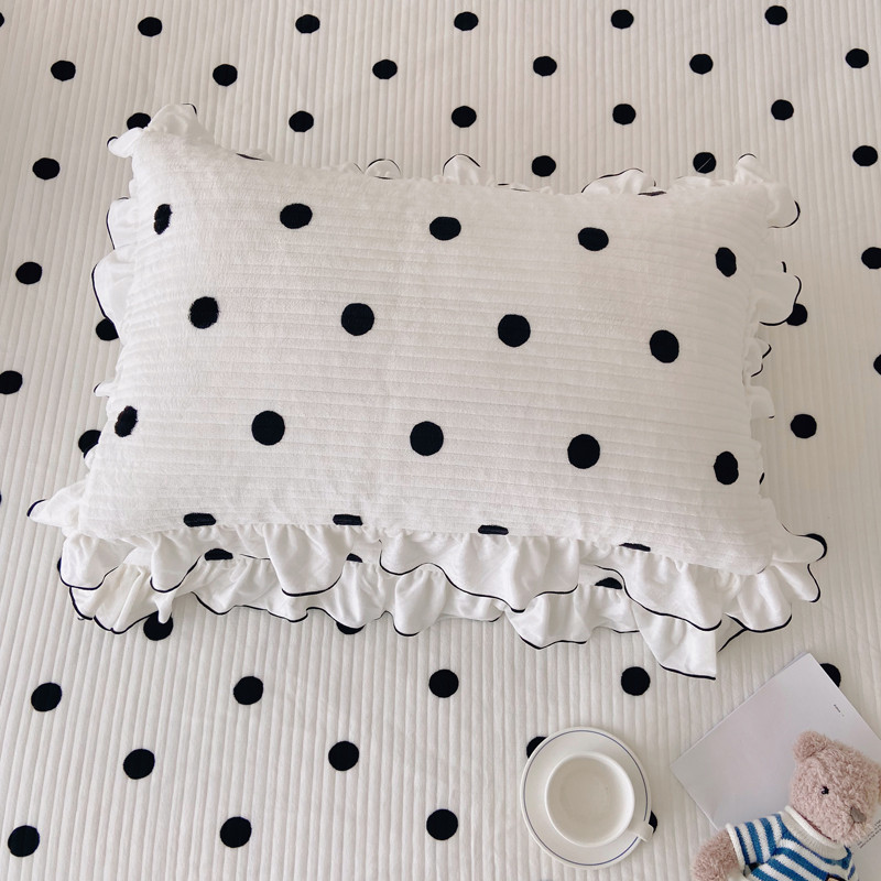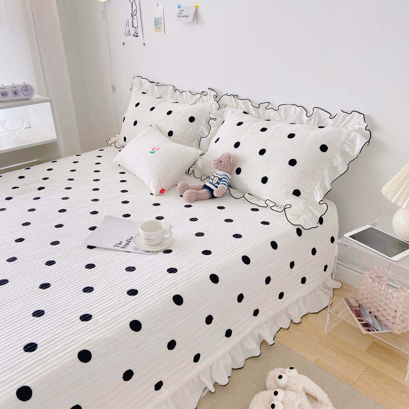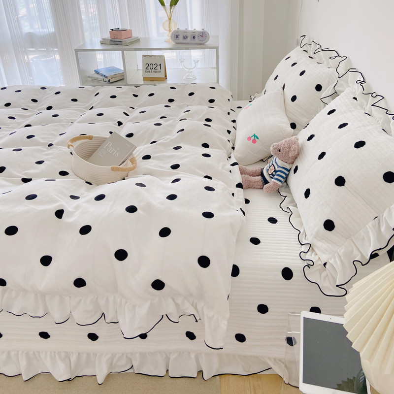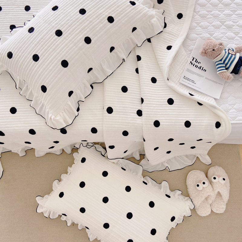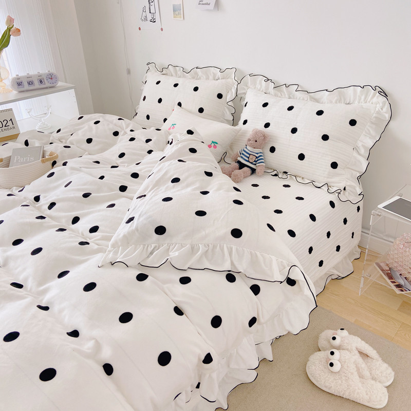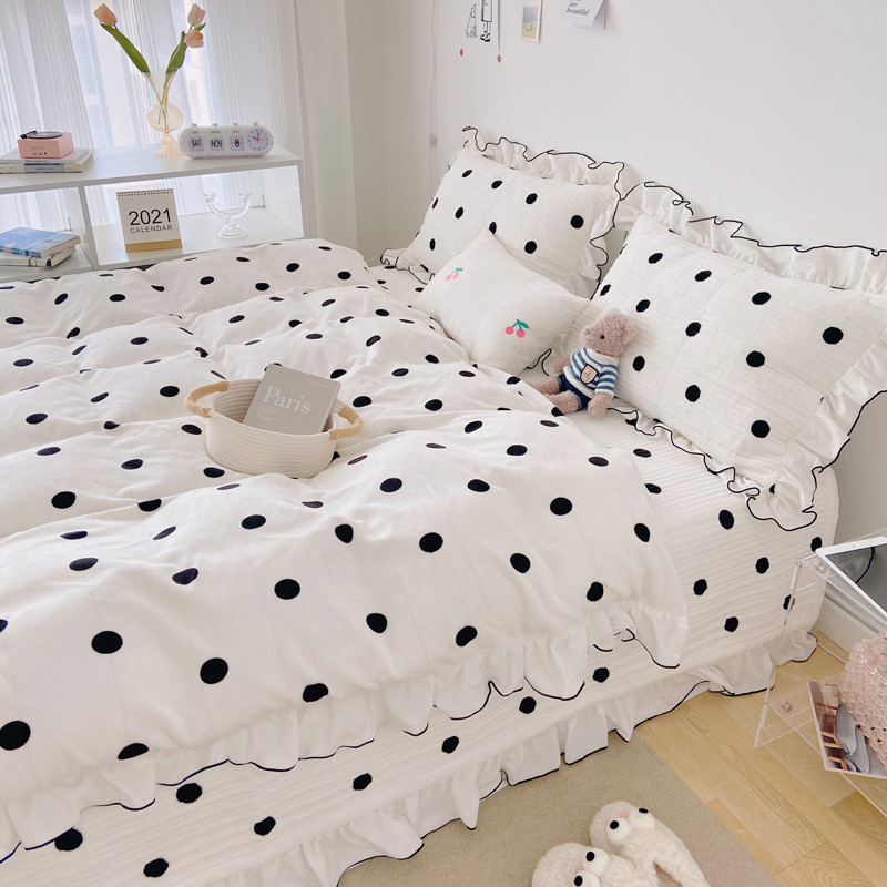 漫调 2021新款ins风波点黑白系列小清新牛奶绒床盖四件套 经典波点