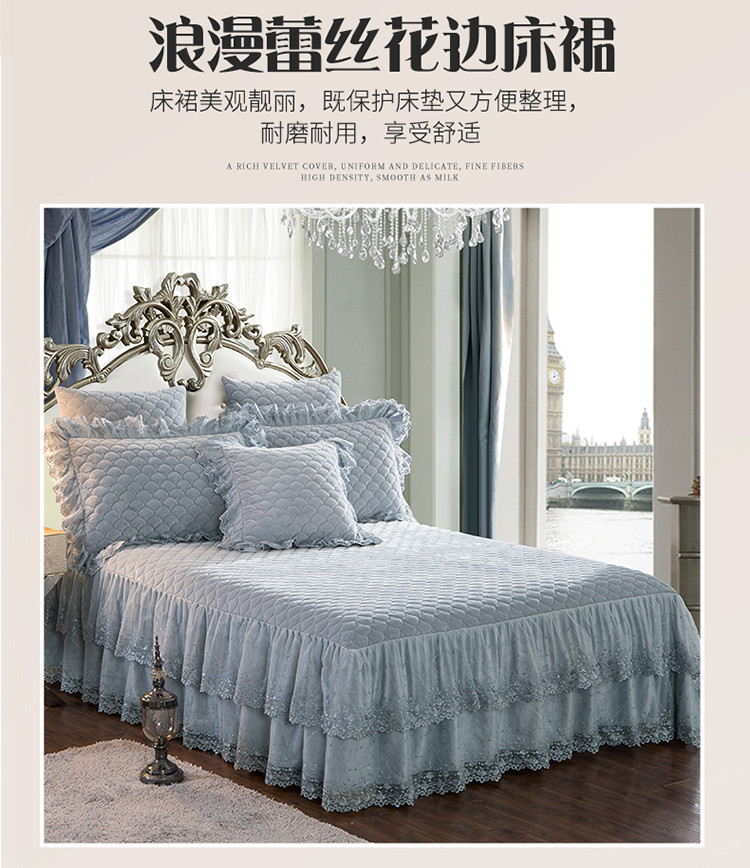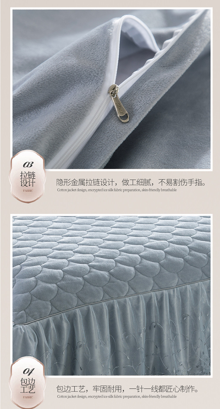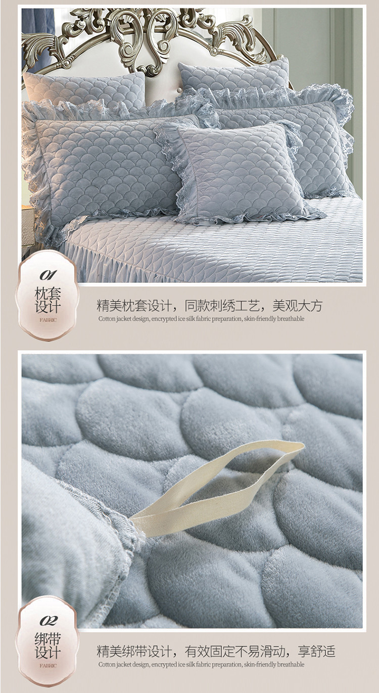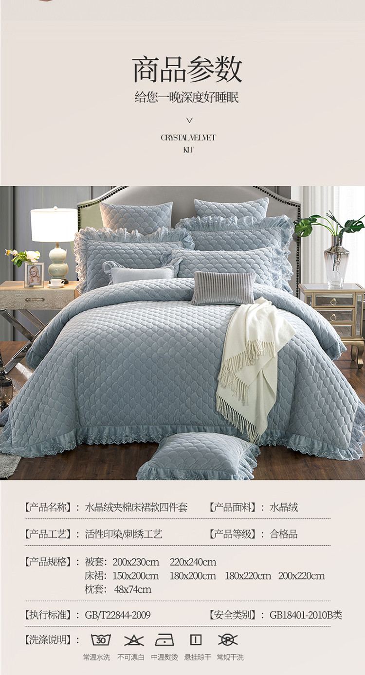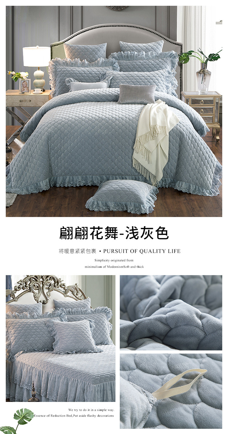 当前位置: 91家纺网 > 商品网购 > 床品套件 > 四件套 > 水晶绒四件套 > 恒爱2021新款水晶绒夹棉床裙款翩翩花舞系列四件套 浅灰色
