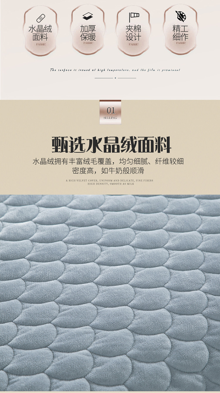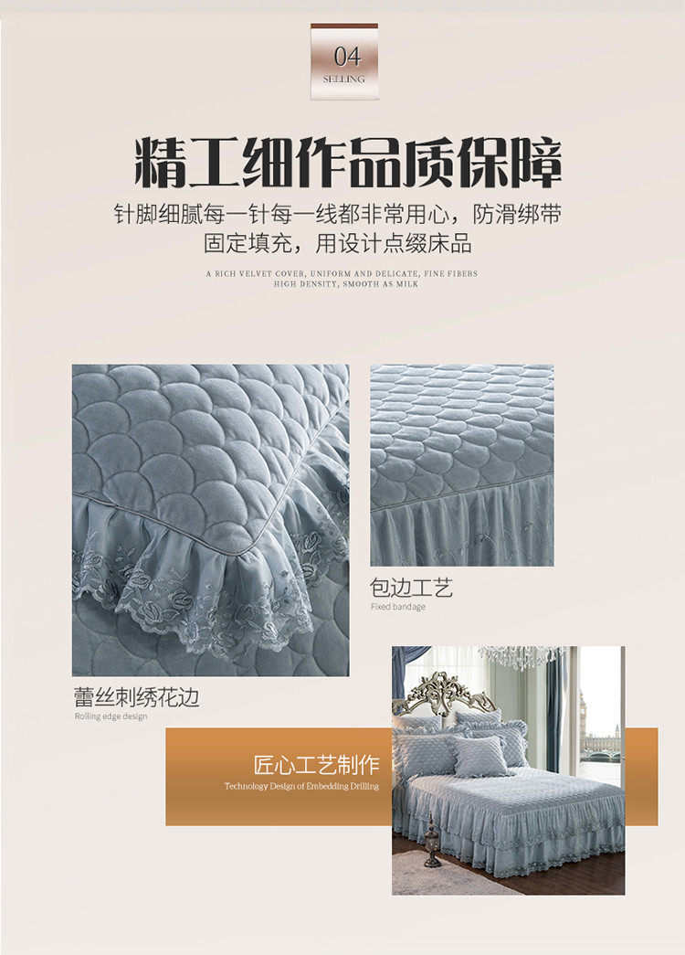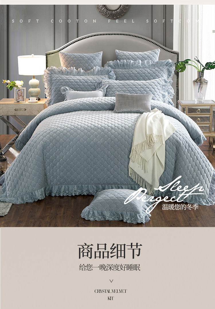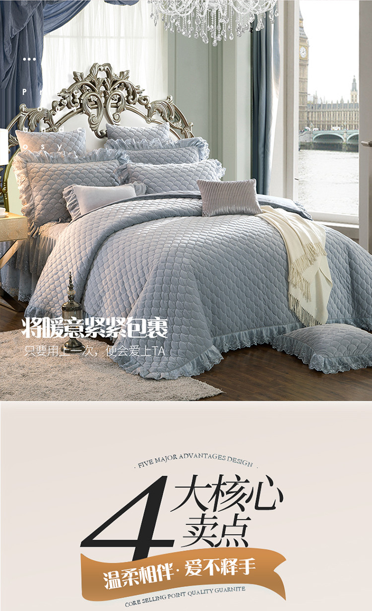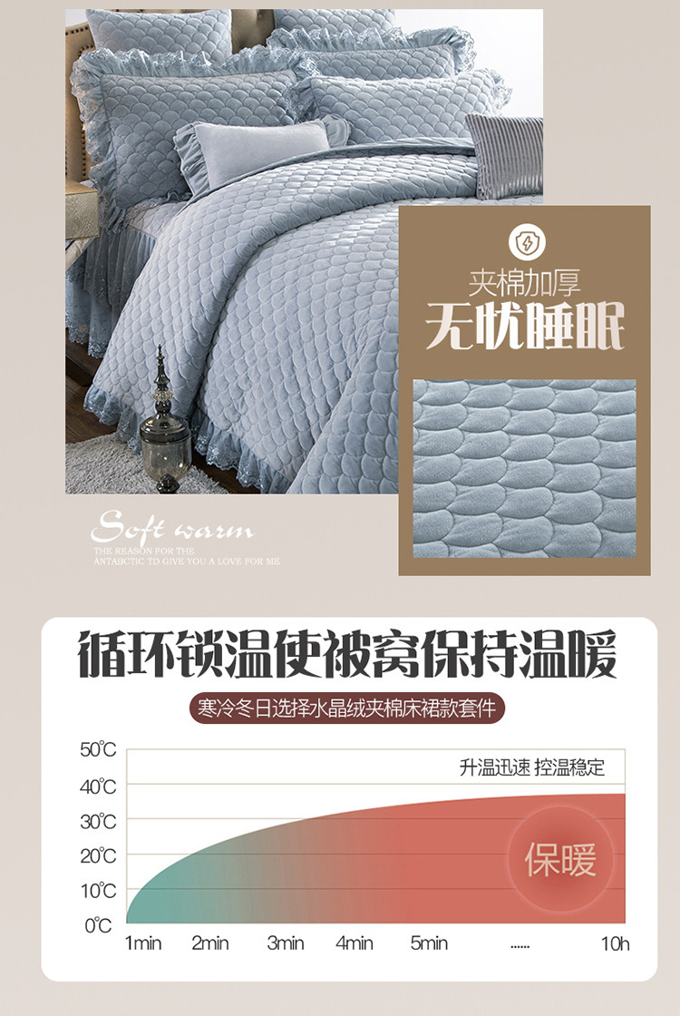 当前位置: 91家纺网 > 商品网购 > 床品套件 > 四件套 > 水晶绒四件套 > 恒爱2021新款水晶绒夹棉床裙款翩翩花舞系列四件套 浅灰色