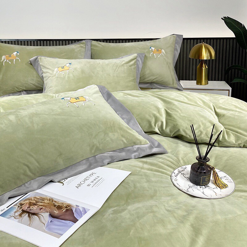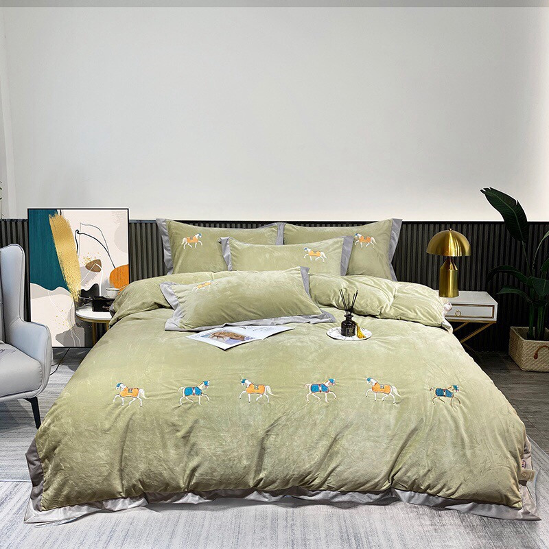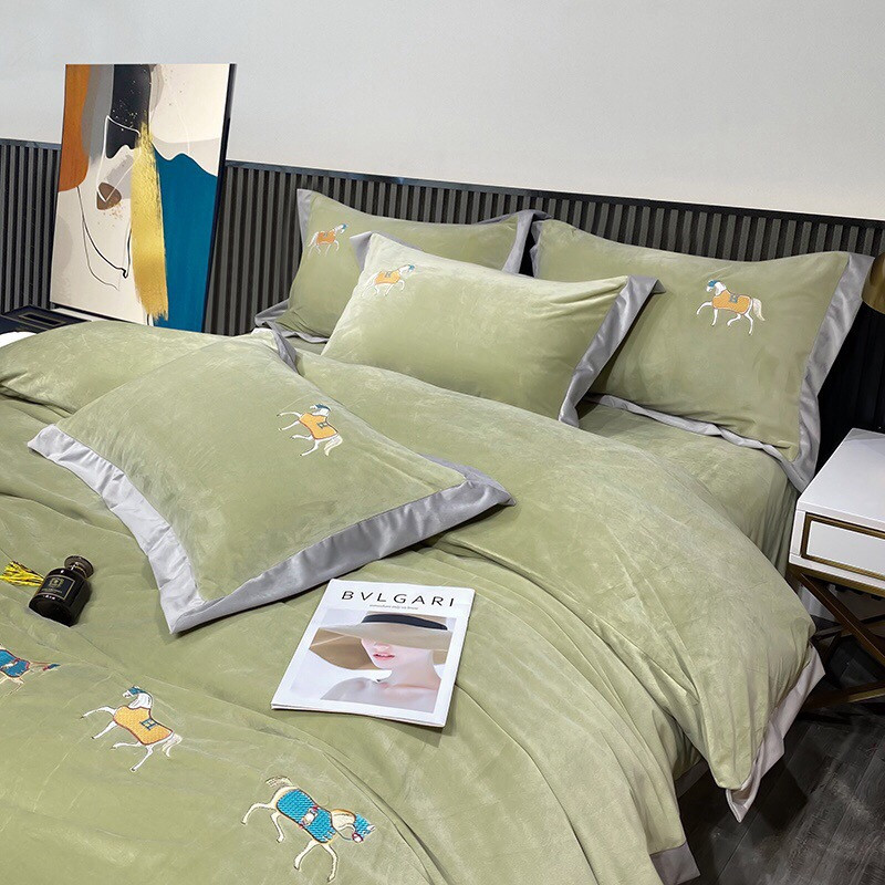 玖玖爱家纺 2021新款爱马仕婴儿绒保暖四件套 爱马仕黎姜