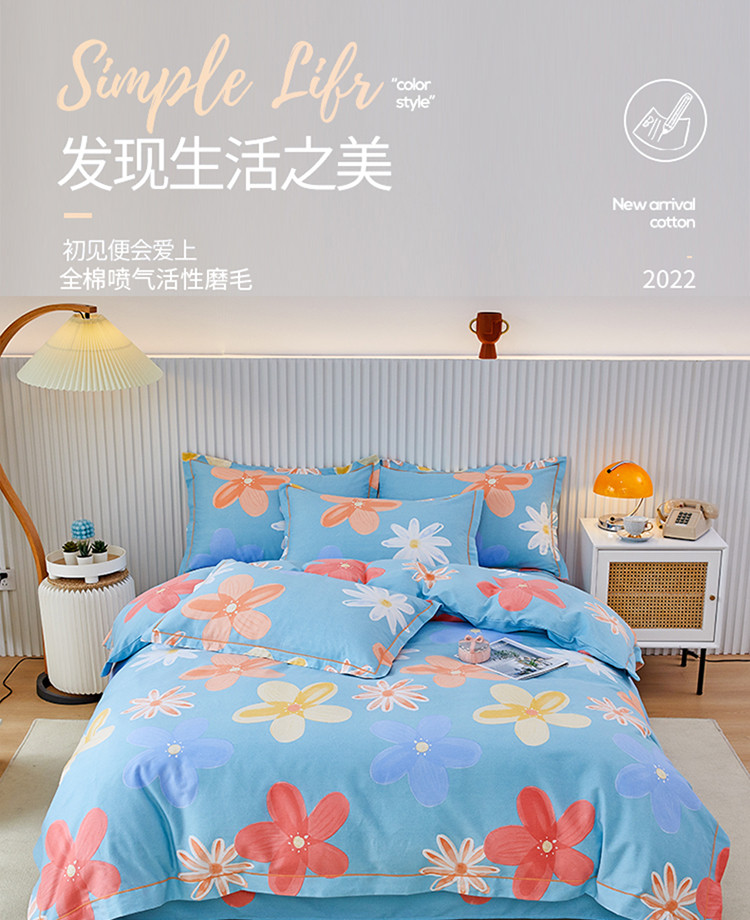 当前位置: 91家纺网 > 商品网购 > 床品套件 > 四件套 > 全棉普通四件套 > 杜先生 2023新款全棉加厚喷气活性磨毛系列四件套 花语时光-蓝