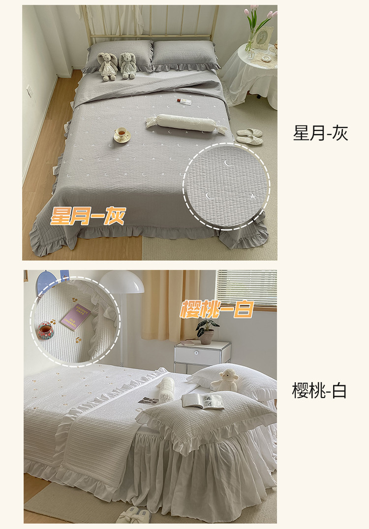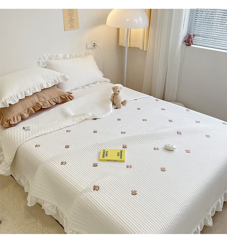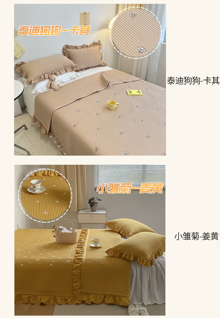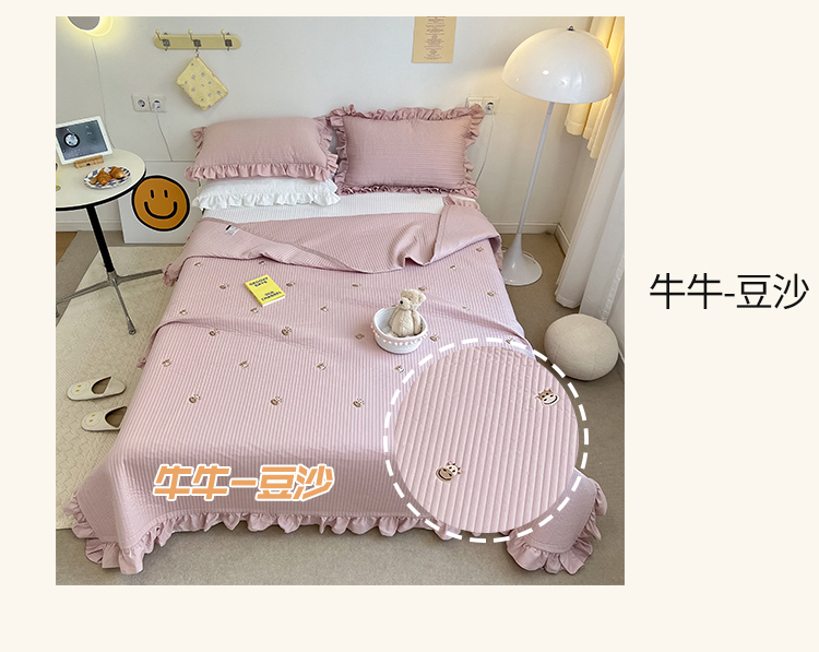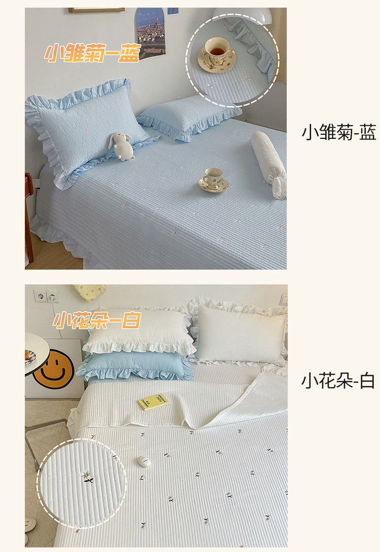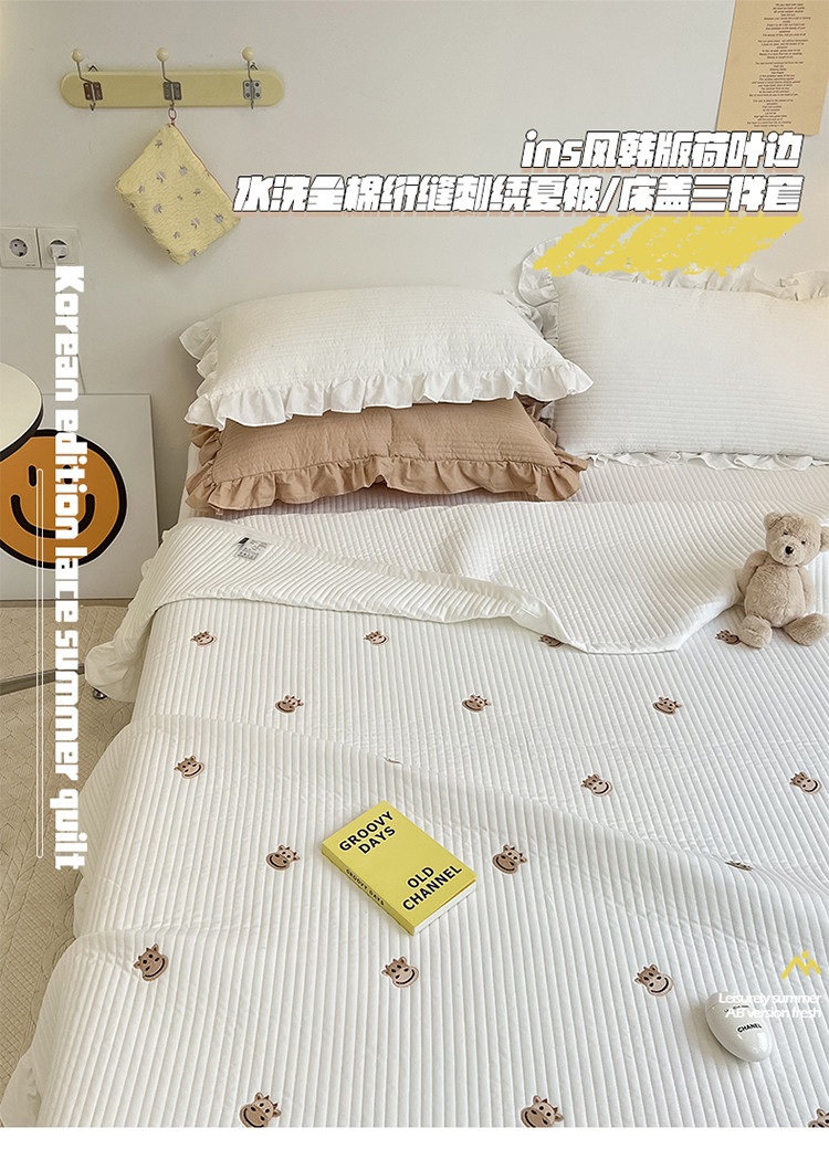 (总)漫调ins风韩版荷叶边水洗全棉绗缝刺绣夏被/床盖三件套