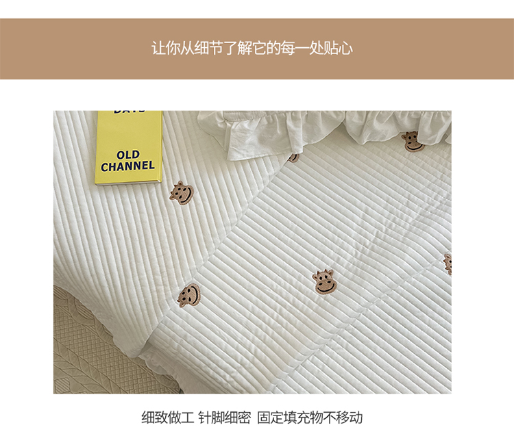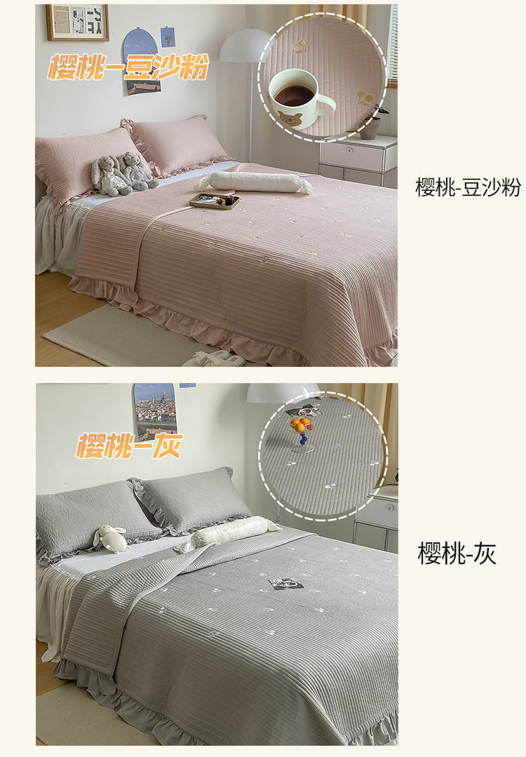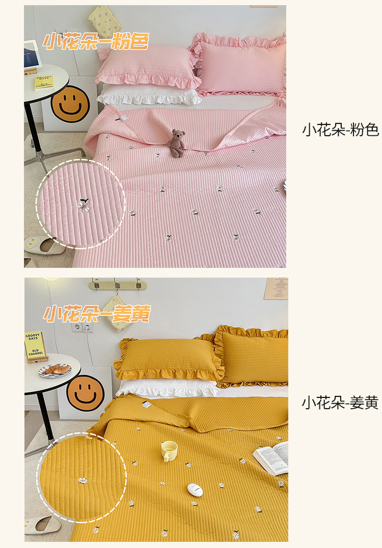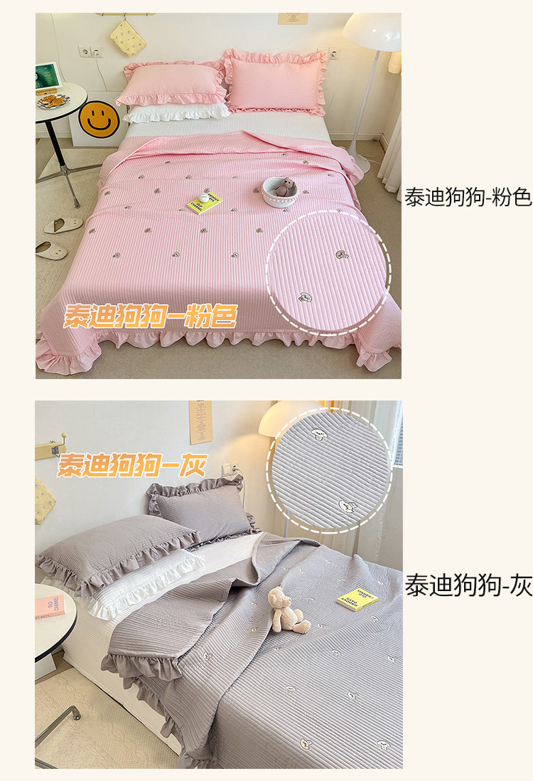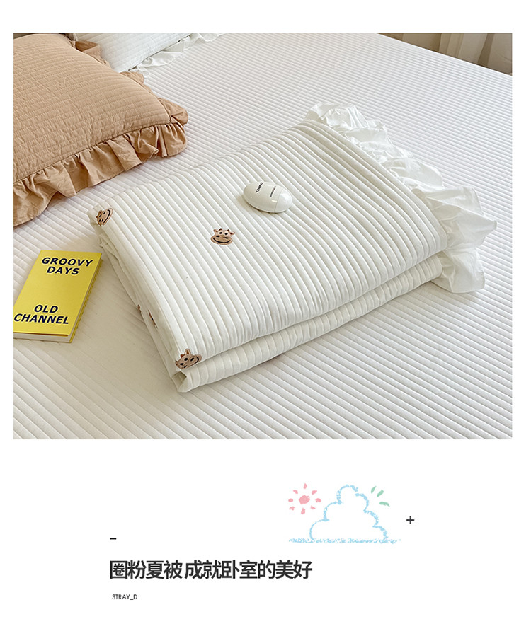 (总)漫调ins风韩版荷叶边水洗全棉绗缝刺绣夏被/床盖三件套