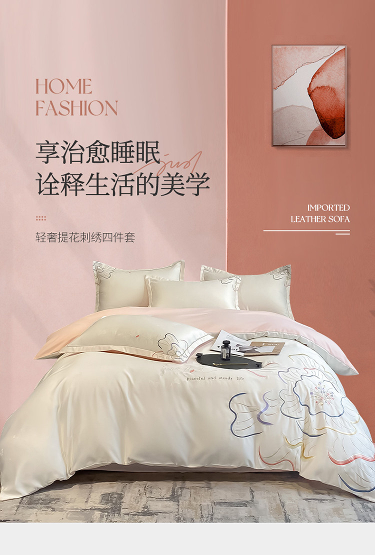 商品名称:涵宸 2022新款轻奢提花刺绣四件套流沙 流沙-米白