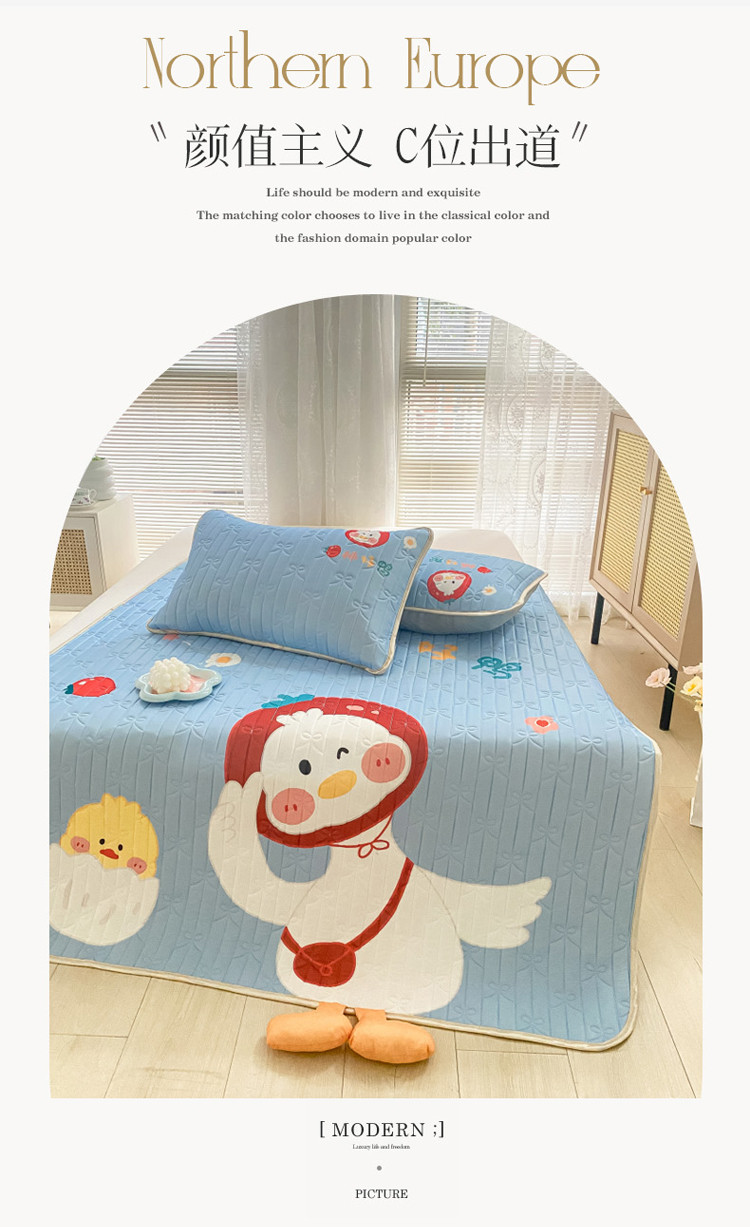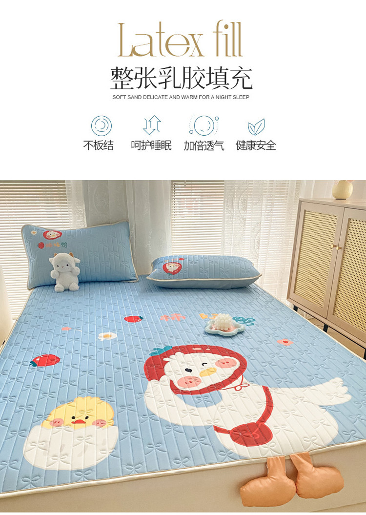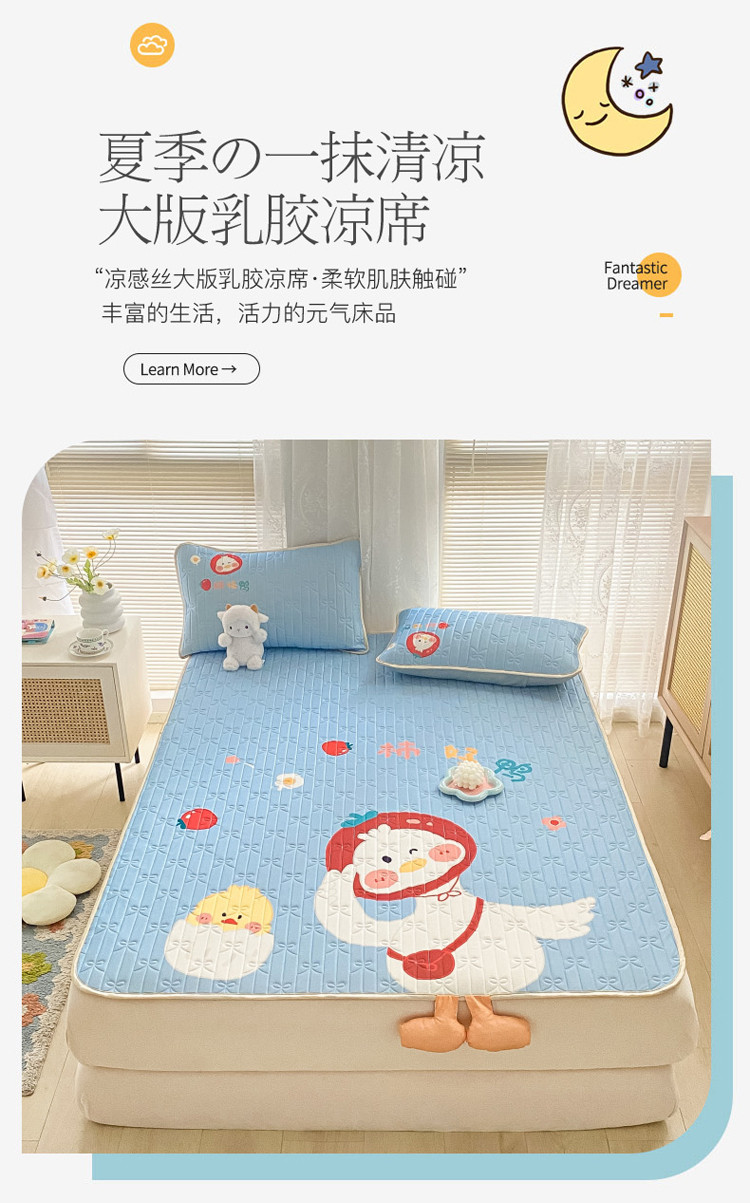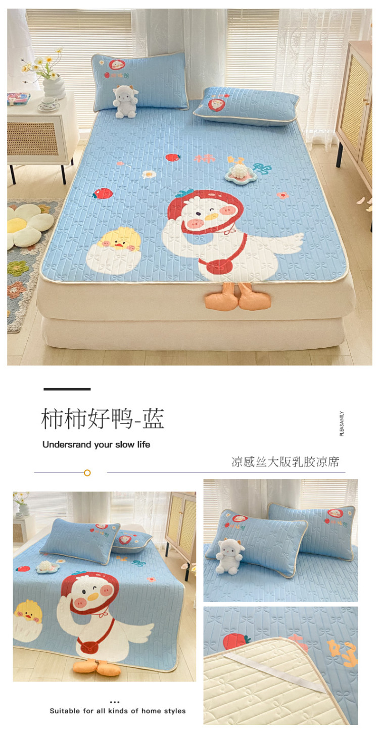商品名称:沐慕 2022新款工艺款大版乳胶凉席 柿柿好鸭-蓝