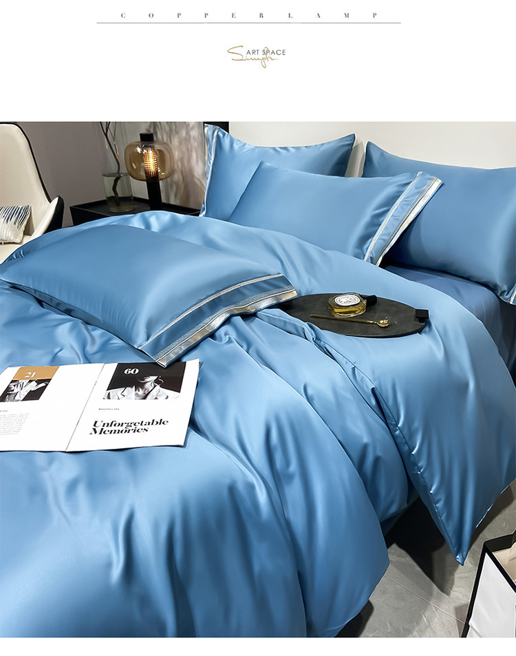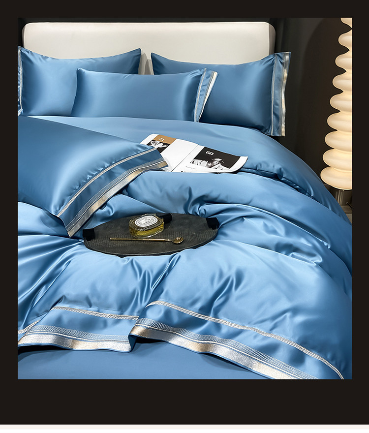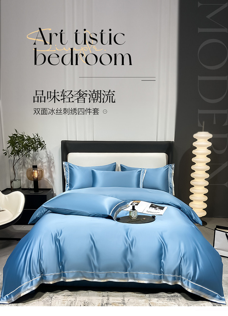 欧乐蒂 2022新款双面冰丝四件套-典雅 宾利蓝