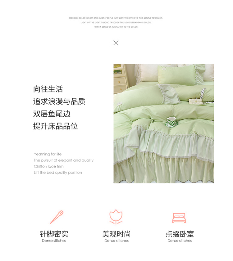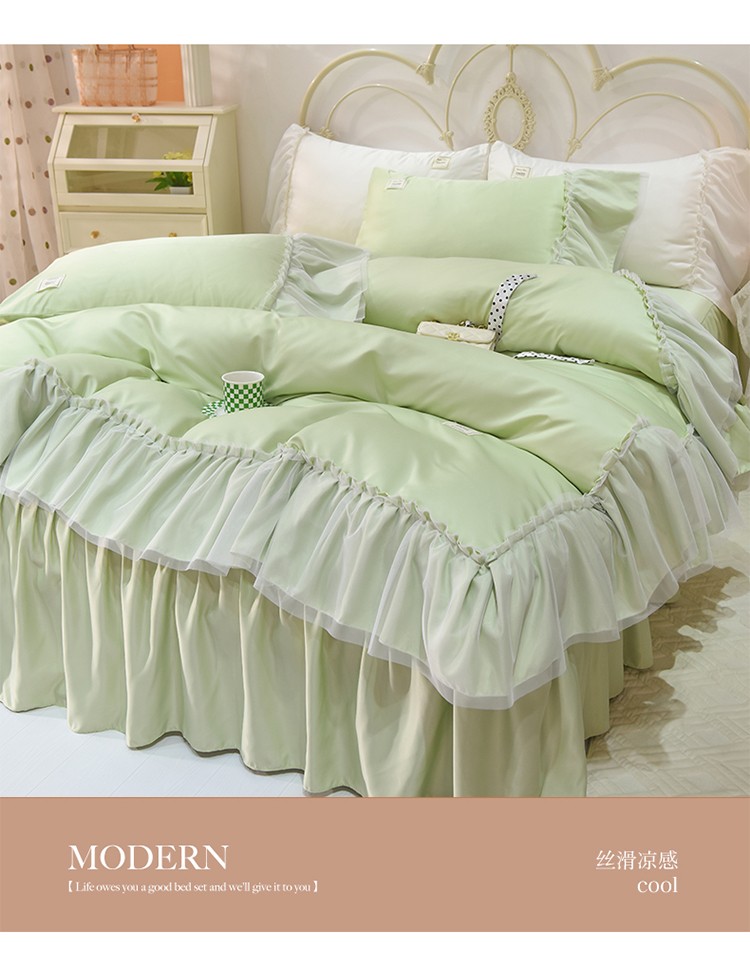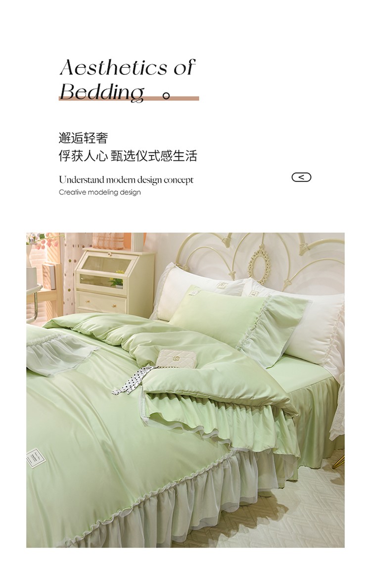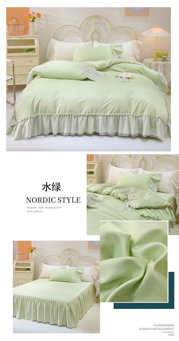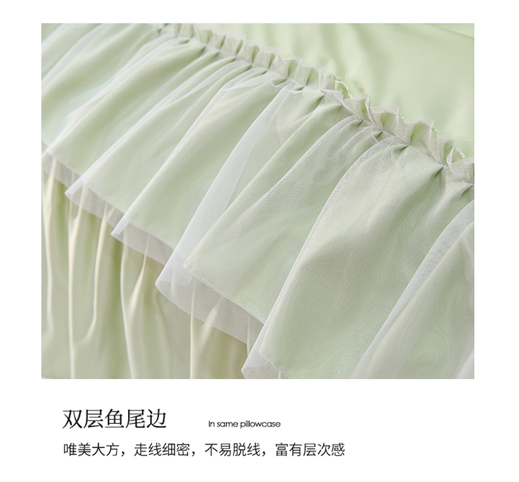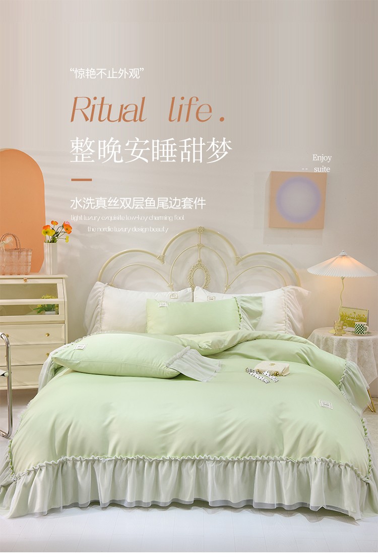 当前位置: 91家纺网 > 商品网购 > 床品套件 > 四件套 > 水洗真丝四件套 > 艾米2025新款水洗真丝双层鱼尾边四件套-梦丽纱系列 水绿