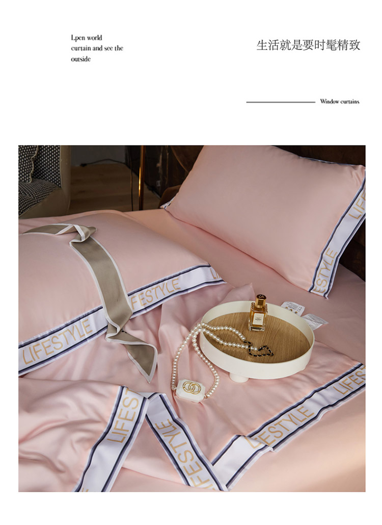 (总)凡客家居 2024新款高克重牛奶绒绣花拼角四件套,海洋蓝,奶油咖,深卡其,樱花粉