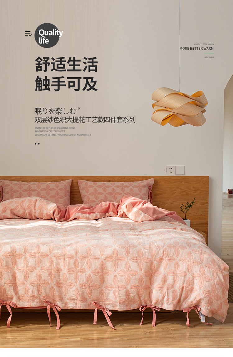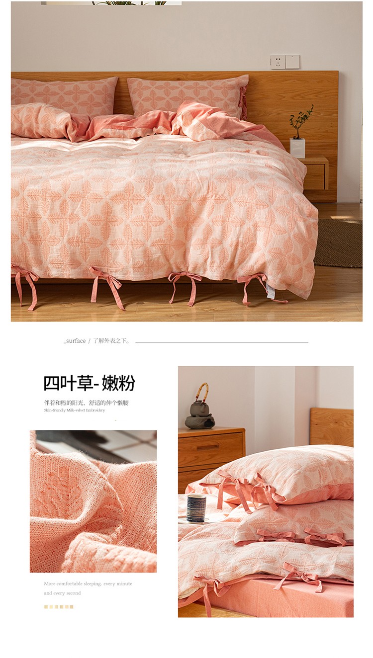 当前位置: 91家纺网 > 商品网购 > 床品套件 > 四件套 > 全棉普通四件套 > 安莱生活 2022新款全棉双层纱蝴蝶结四件套 四叶草-嫩粉