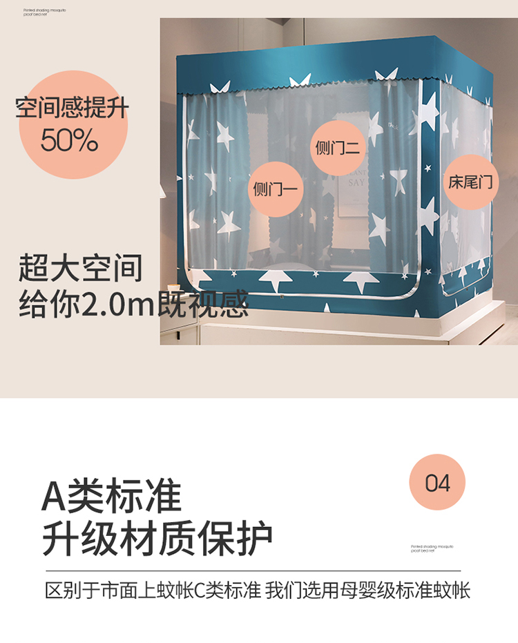 商品名称:千逸虹 2024新款印花U型门回底遮光防蚊坐床蚊帐 星愿