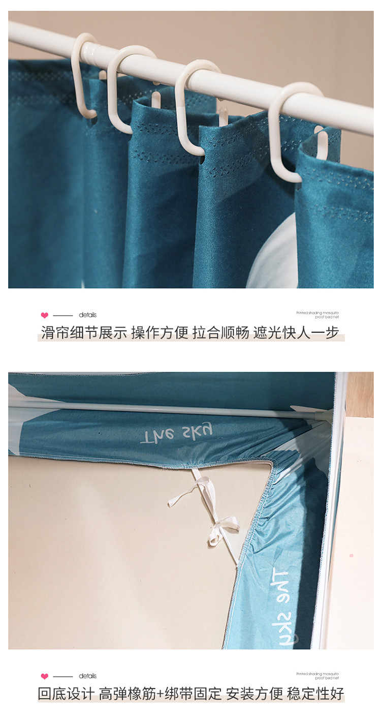 (总)千逸虹 2024新款简约纯色上下铺学生蚊帐,浅蓝色,深蓝色,粉玉,米黄色,墨兰