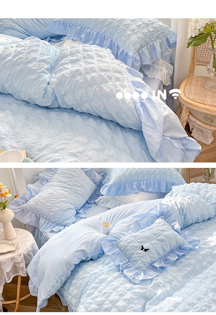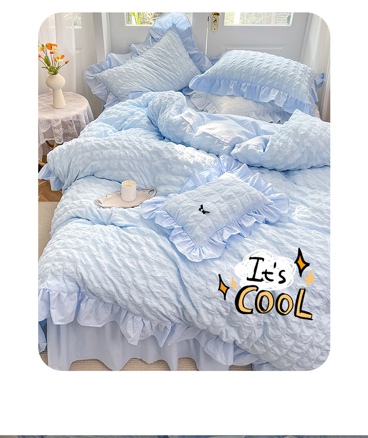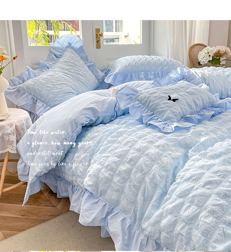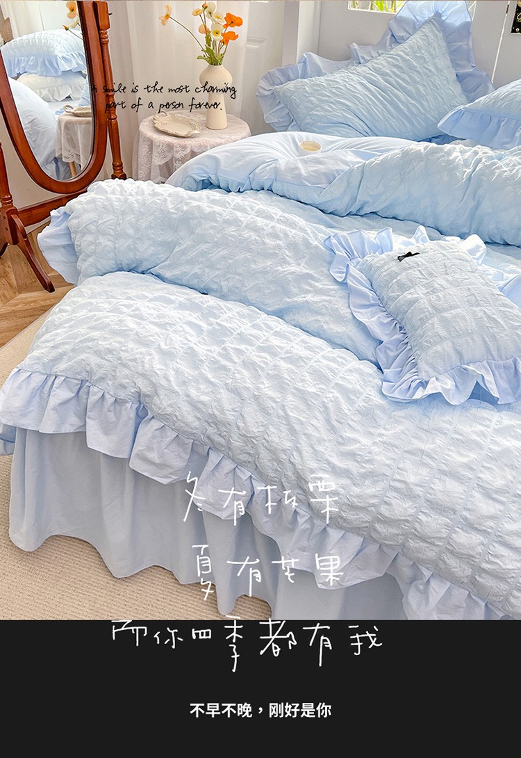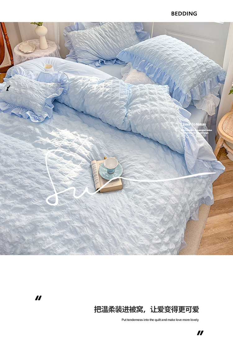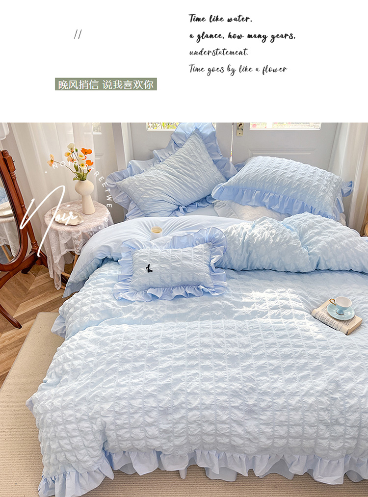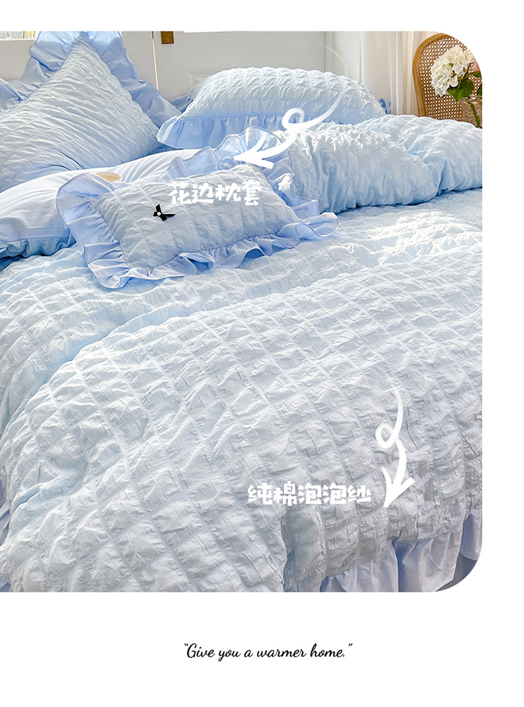 婳庭家居 2023新款全棉泡泡纱四件套 浅天蓝