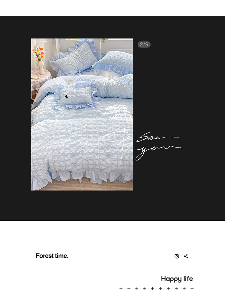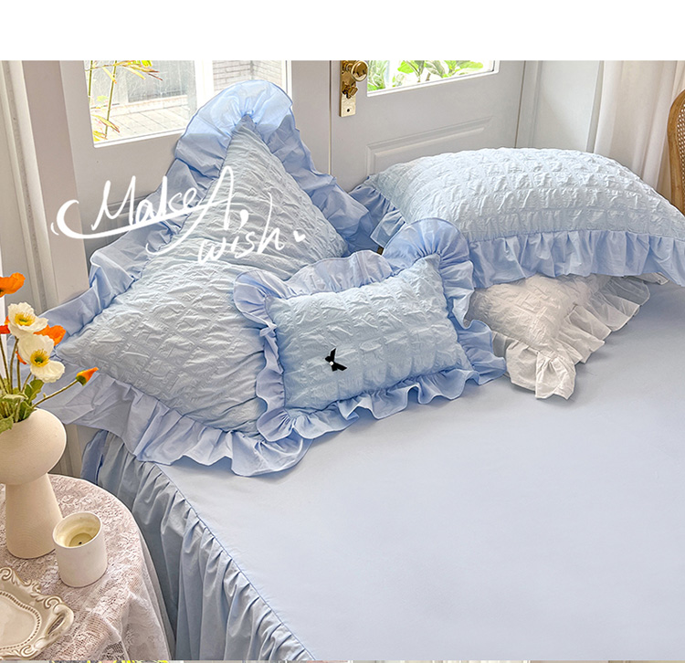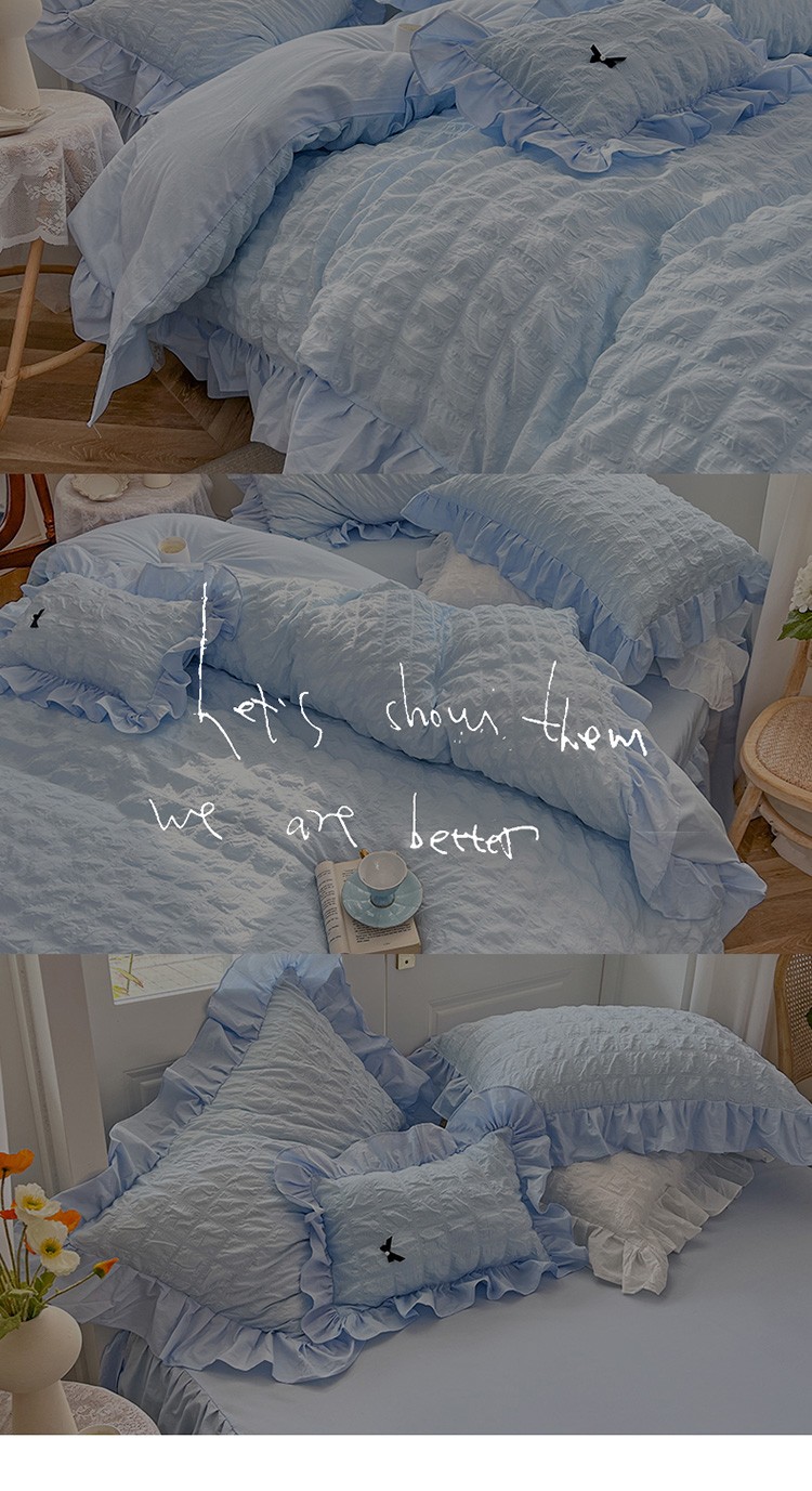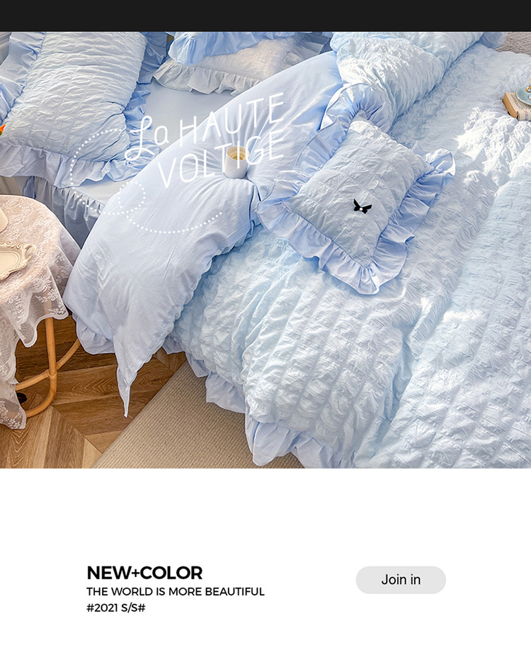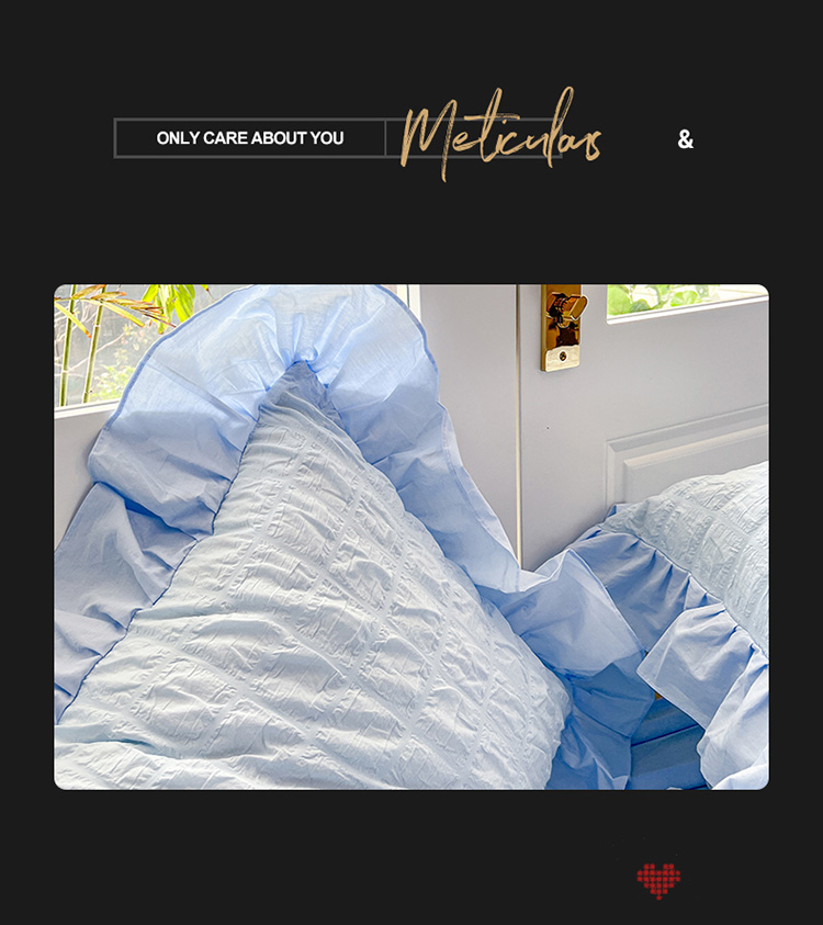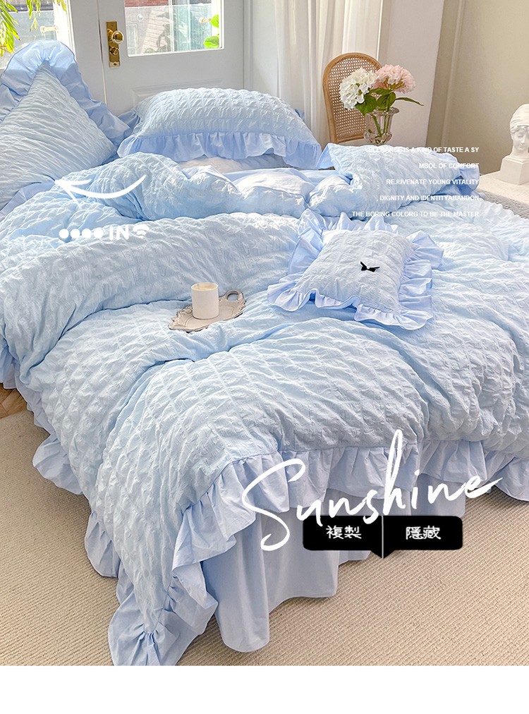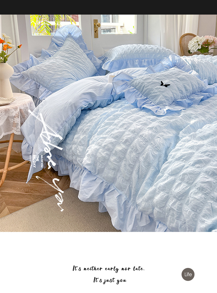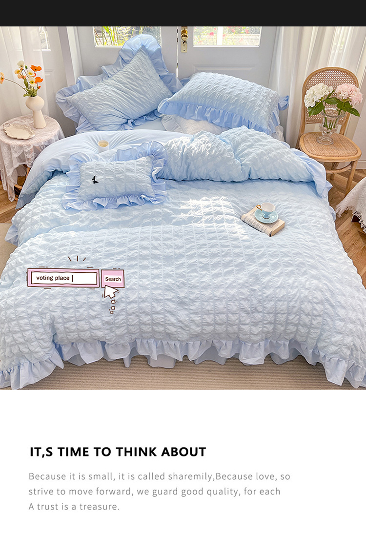 婳庭家居 2023新款全棉泡泡纱四件套 浅天蓝